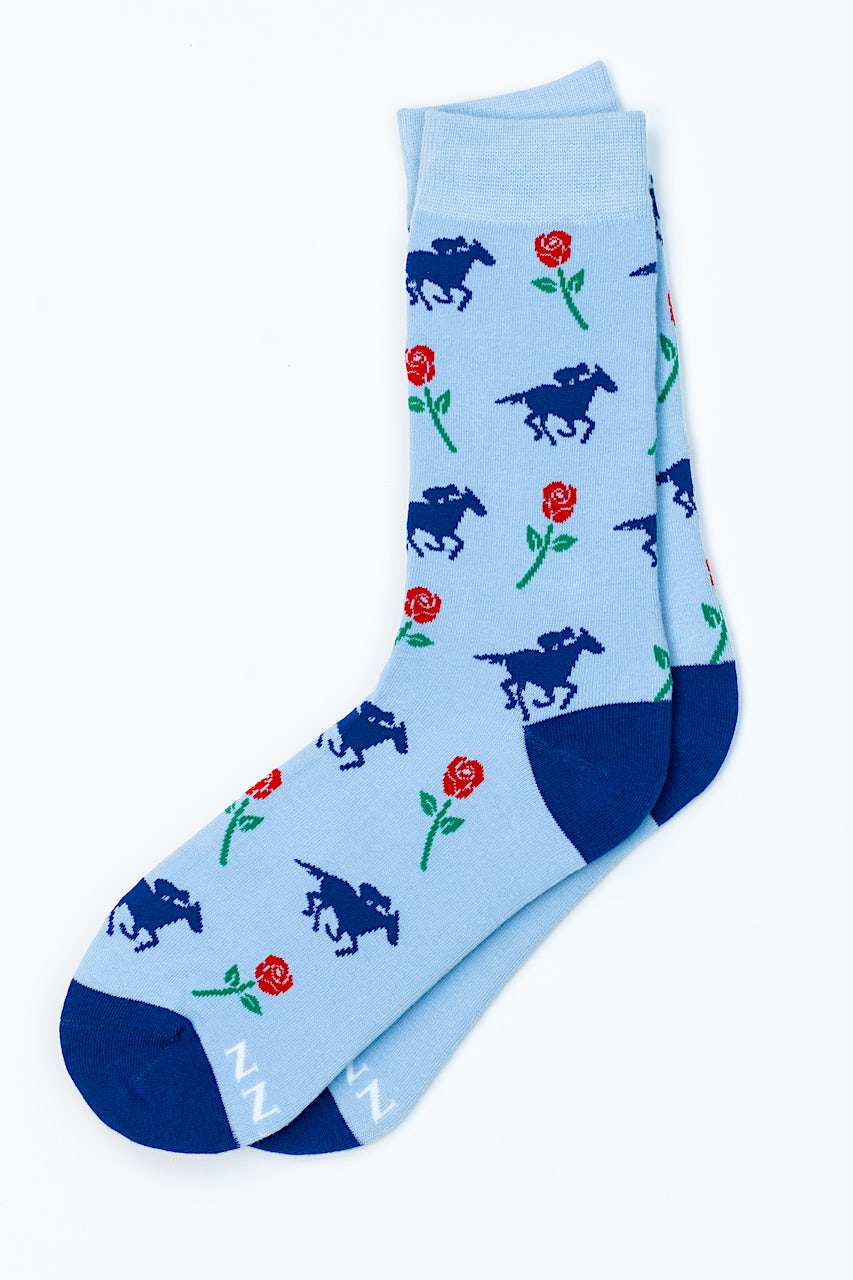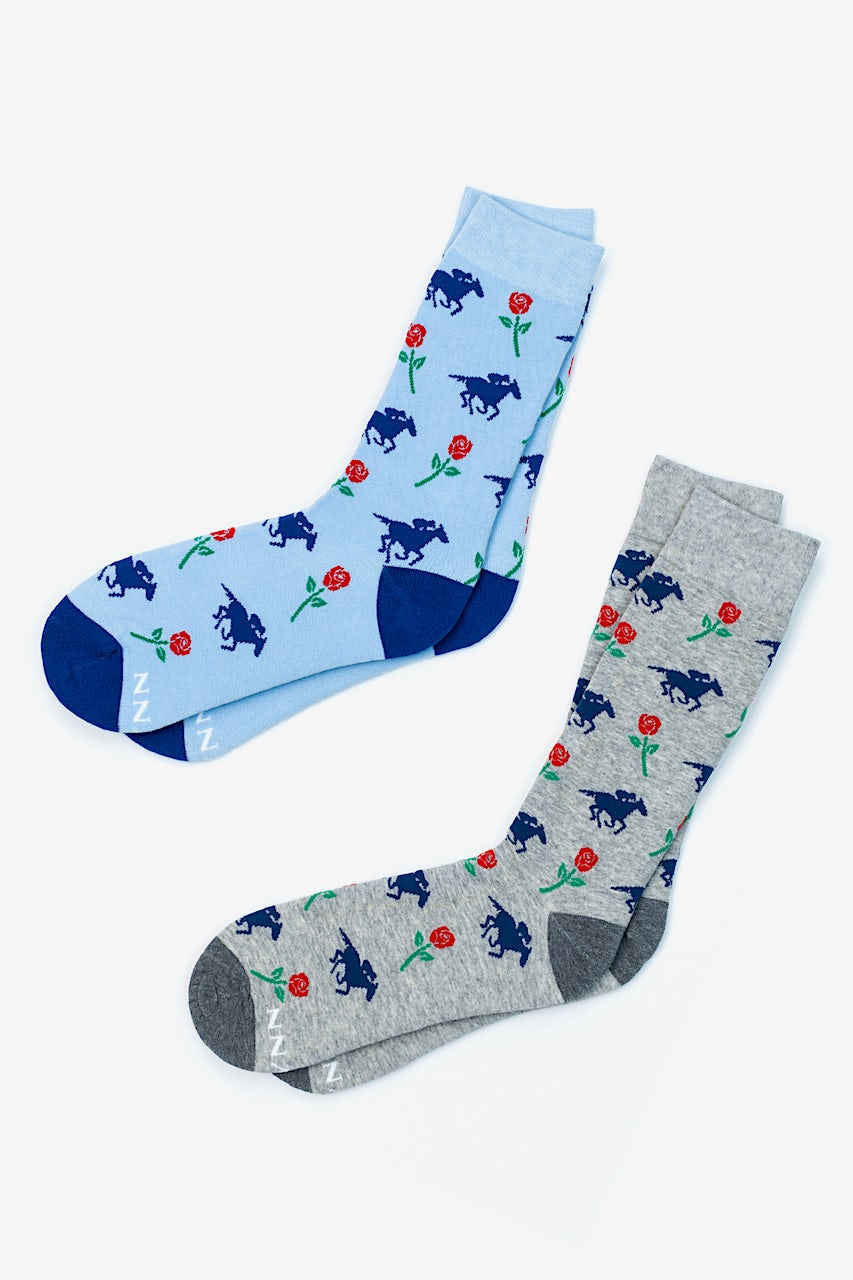 These socks are made from high quality carded cotton, ensuring a soft and comfortable fit. They come in two stylish colors, a classic gray and a deep blue, perfect for a sophisticated and stylish look. With a durable construction, these socks are meant to last and be a staple in your wardrobe. The two pairs included in this package are perfect for a couple to share, with one pair in each size to ensure a perfect fit for both individuals. The socks feature a horse racing theme, with charming depictions of horses and a victory rose. Whether you're a fan of equestrian sports or just appreciate a fashionable accessory, these cotton socks are sure to be a hit.