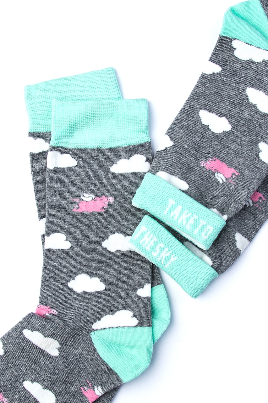 It's time to own up to your word since pigs are flying now. Take to the Sky and elevate your sock game with this whimsical pair.