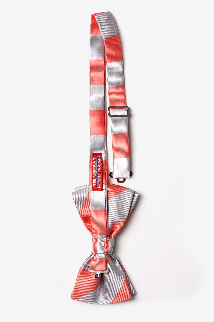 Every distinguished gentleman should own a classic collegiate stripe bow tie. Its ease of pairing with dress shirts and suits alike has made this design a timeless favorite over the years and a must-have for school and business uniforms. Each pre-tied bow tie is made of 100% woven microfiber for a sturdy bow tie that is sure to outlast the seasons and make for easy maintenance. Featured in coral and silver stripes, we invite you to fall in love with this classic.