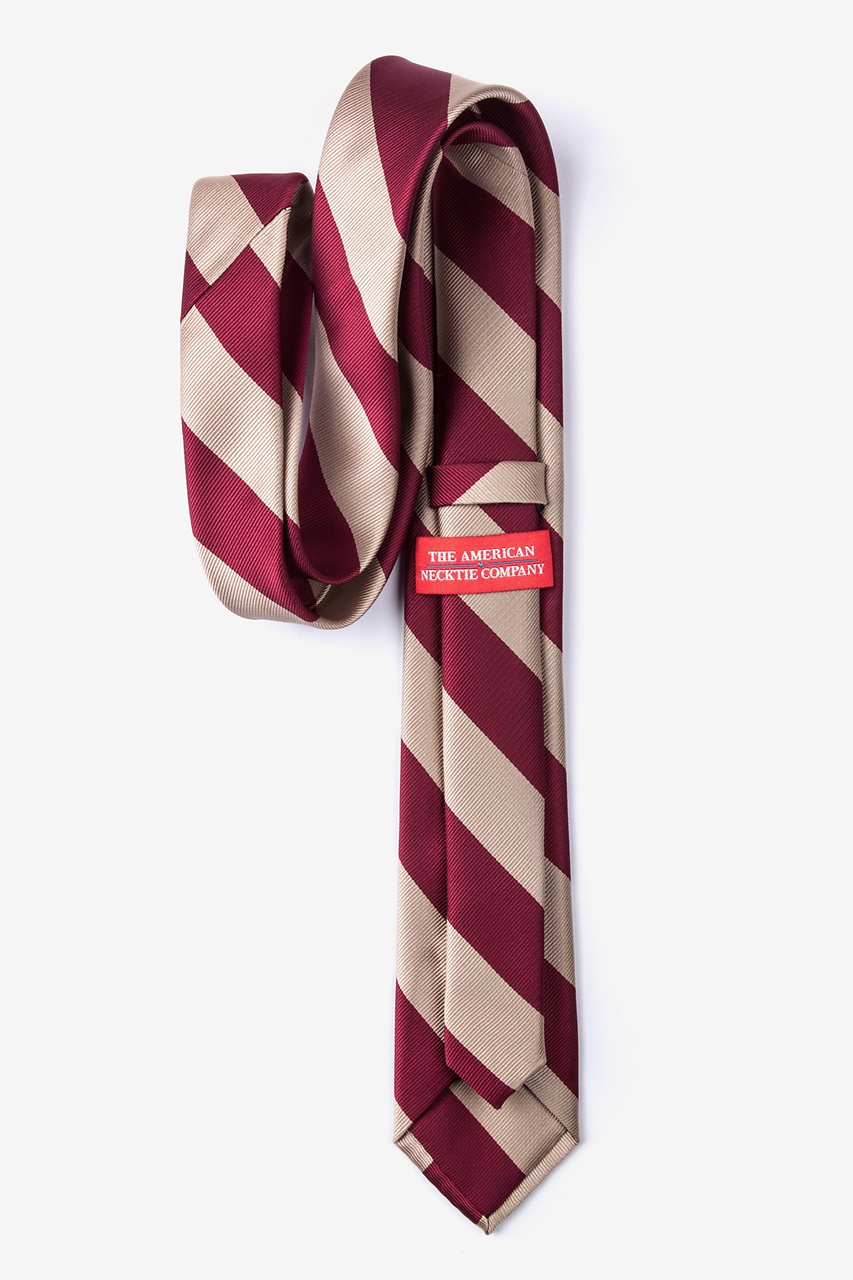 Every distinguished young gentleman should own a classic collegiate stripe tie. Its ease of pairing with dress shirts and suits alike has made this design a timeless favorite over the years and a must-have for school and business uniforms. Each boy's tie is made of 100% woven microfiber for a sturdy tie that is sure to outlast the seasons and make for easy maintenance. Featured in crimson and cream stripes, we invite you to fall in love with this classic.