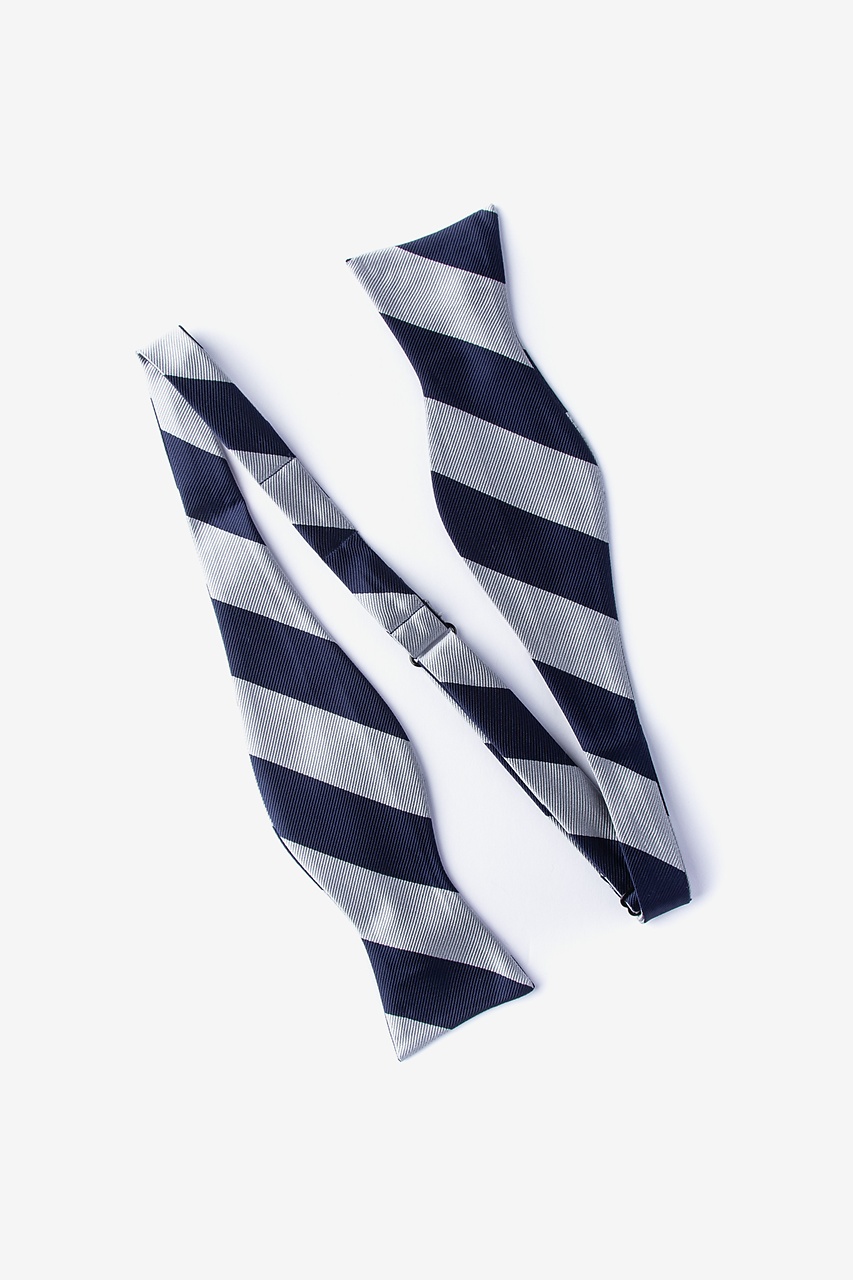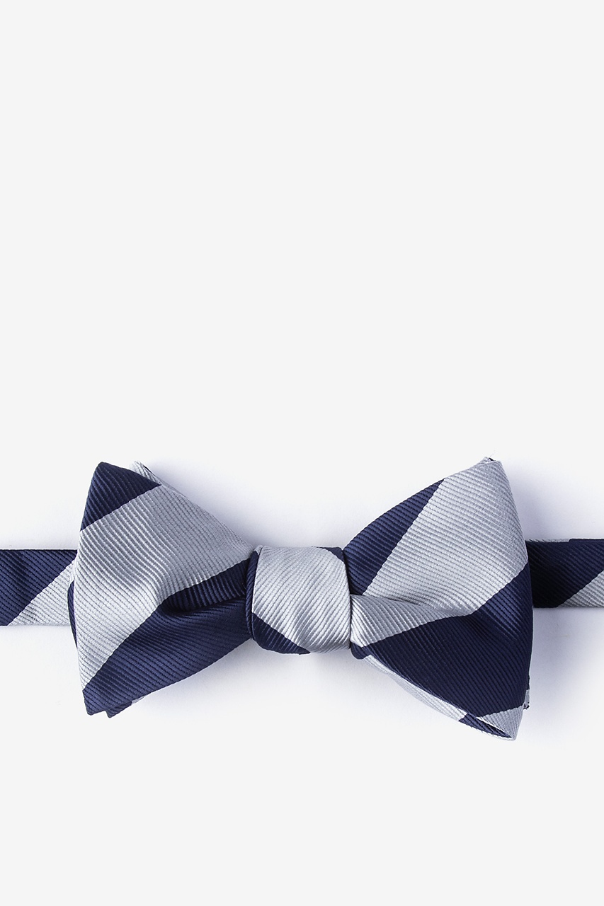 Every distinguished gentleman should own a classic collegiate stripe tie. It's ease of pairing with dress shirts and suits alike has made this design a timeless favorite over the years and a must have for school and business uniforms. Each self tie bow tie is designed with 100% woven microfibers for a sturdy tie that is sure to outlast the seasons and make for easy maintenance. Featured in navy and silver stripe, we invite you to fall in love with this classic.