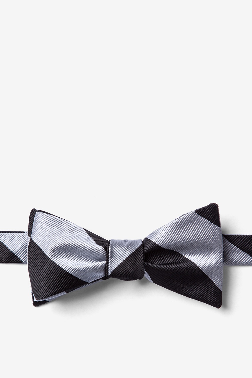Every distinguished gentleman should own a classic collegiate stripe tie. It's ease of pairing with dress shirts and suits alike has made this design a timeless favorite over the years and a must have for school and business uniforms. Each self tie bow tie is designed with 100% woven microfibers for a sturdy tie that is sure to outlast the seasons and make for easy maintenance. Featured in silver and black stripe, we invite you to fall in love with this classic.