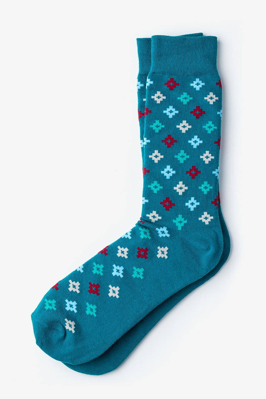 Love comes in all shapes and sizes, and these Alamitos socks will show you just that. A turquoise background is the perfect canvas for green, baby blue, red, and cream to all shine through. Sock Genius socks are made with 100% carded cotton to give you a product that's equal parts comfortable and stylish.