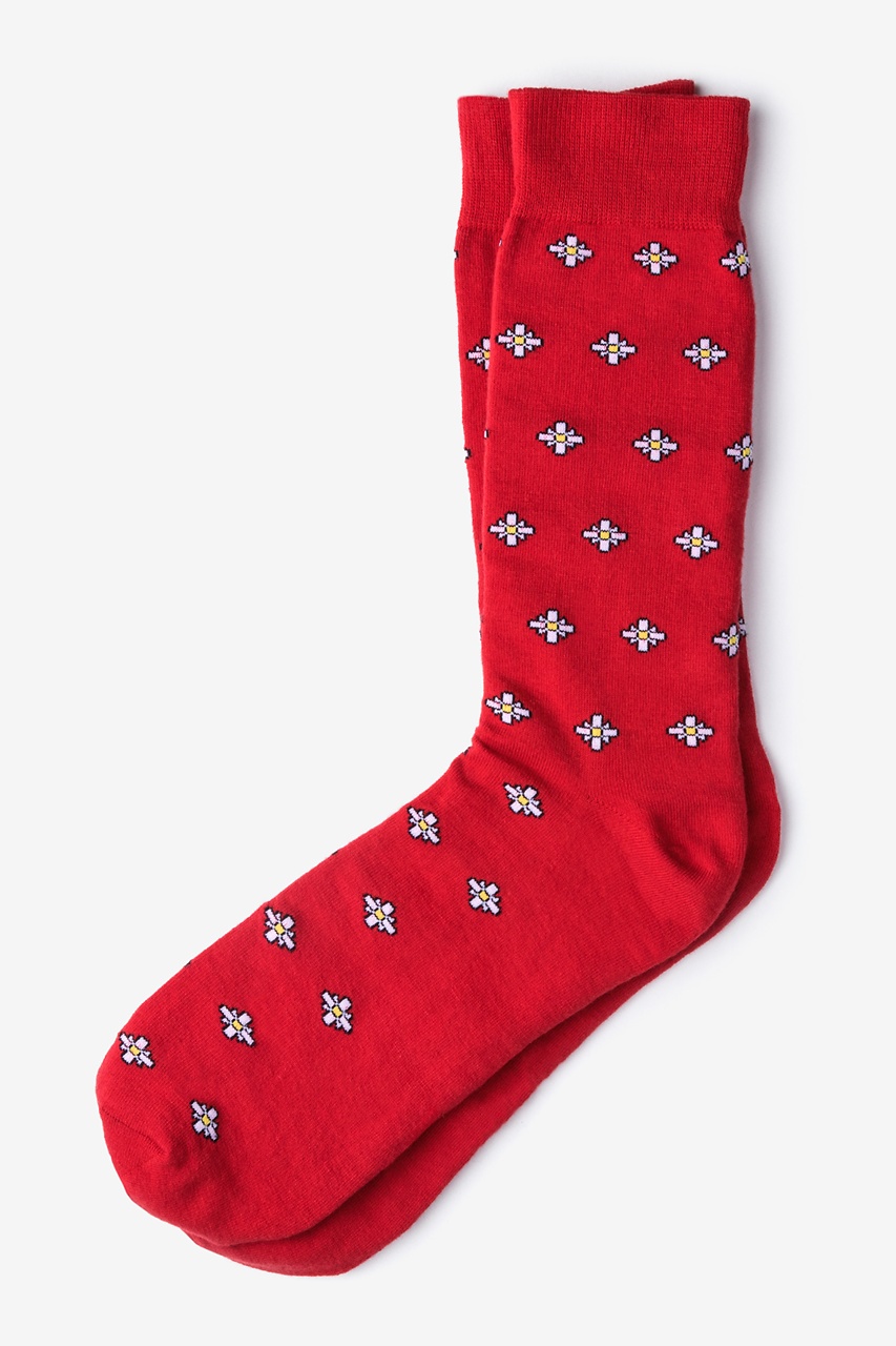 Our Gardena socks feature a pattern of abstract flowers atop a red background. Make a statement with these cotton Sock Genius socks on your next weekend adventure.