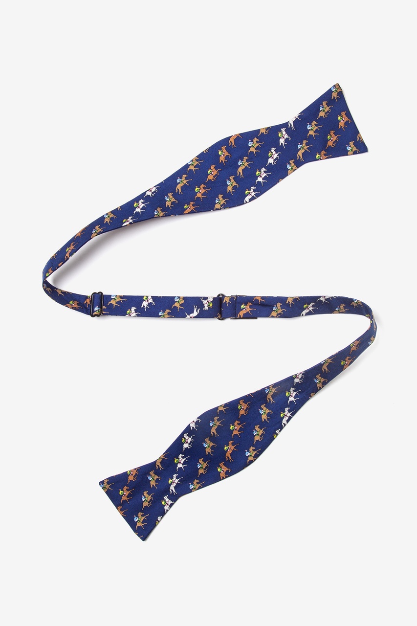 Alynn Neckwear, a designer label recognized for its elegant horse ties, presents the freestyle bow tie “Win, Place, Show.” This is a horse tie for classy men that enjoy equestrian events. It is constructed of high quality silk and features a repeating pattern of racehorses and jockeys on a blue matte background. If you’re trying to show your style, this bowtie will post a win every time.