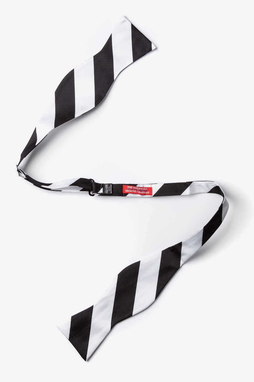 Every distinguished gentleman should own a classic collegiate stripe tie. It's ease of pairing with dress shirts and suits alike has made this design a timeless favorite over the years and a must have for school and business uniforms. Each self tie bow tie is designed with 100% woven microfibers for a sturdy tie that is sure to outlast the seasons and make for easy maintenance. Featured in black and white stripe, we invite you to fall in love with this classic.