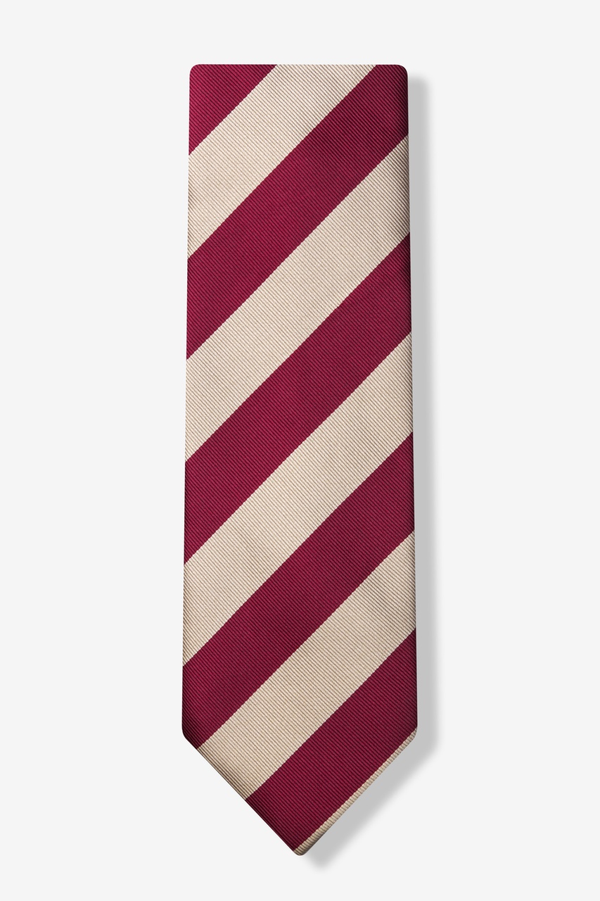 Every distinguished gentleman should own a classic collegiate stripe tie. It's ease of pairing with dress shirts and suits alike has made this design a timeless favorite over the years and a must have for school and business uniforms. Each extra long tie is designed with 100% woven microfibers for a sturdy tie that is sure to outlast the seasons and make for easy maintenance. Featured in crimson and cream stripe, we invite you to fall in love with this classic.