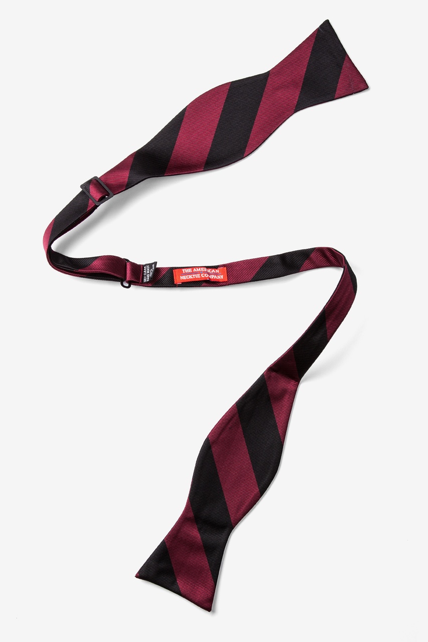 Every distinguished gentleman should own a classic collegiate stripe tie. It's ease of pairing with dress shirts and suits alike has made this design a timeless favorite over the years and a must have for school and business uniforms. Each self tie bow tie is designed with 100% woven microfibers for a sturdy tie that is sure to outlast the seasons and make for easy maintenance. Featured in maroon and black stripe, we invite you to fall in love with this classic.