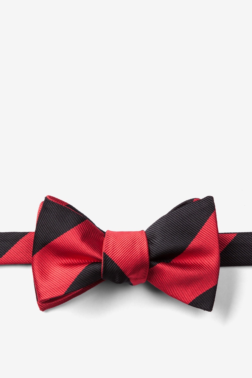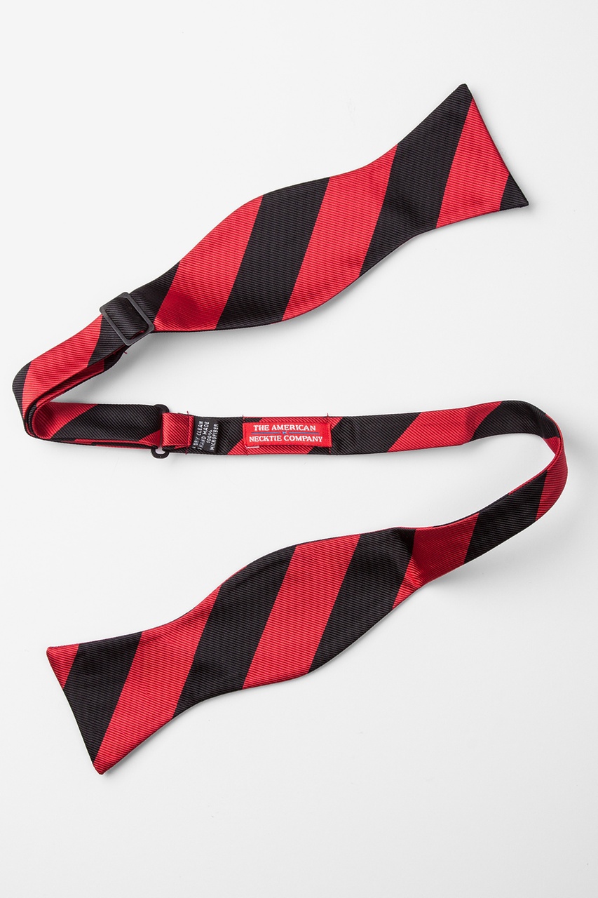 Every distinguished gentleman should own a classic collegiate stripe tie. It's ease of pairing with dress shirts and suits alike has made this design a timeless favorite over the years and a must have for school and business uniforms. Each self tie bow tie is designed with 100% woven microfibers for a sturdy tie that is sure to outlast the seasons and make for easy maintenance. Featured in red and black stripe, we invite you to fall in love with this classic.