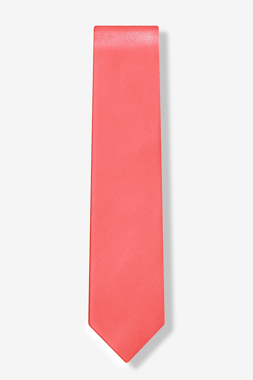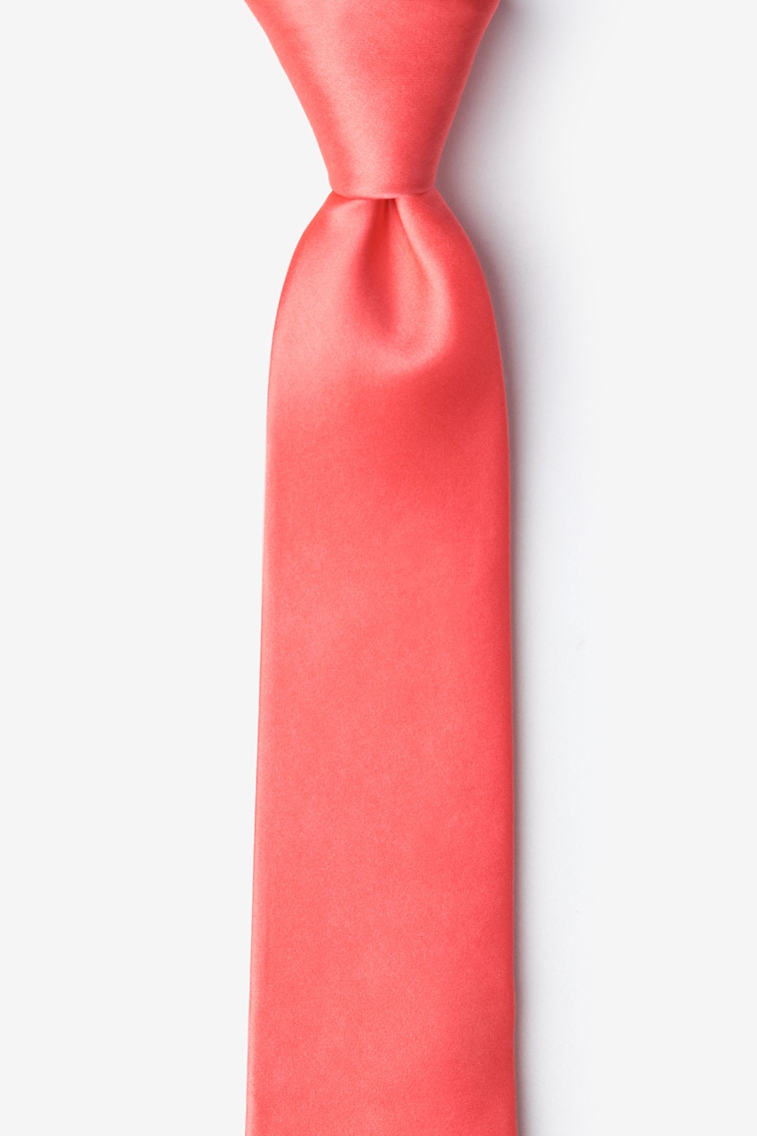 Keep your formal attire snappy with this trim and stylish men's silk skinny necktie. Tailored in our Coral color and pruned to a precise two and a half inch cut, this handsome necktie makes a firm statement without losing the reigns of its understated elegance. Simple, yet striking. Distinct, yet versatile. This, dear gentleman, is what we like to call a modern day menswear classic. Enjoy.