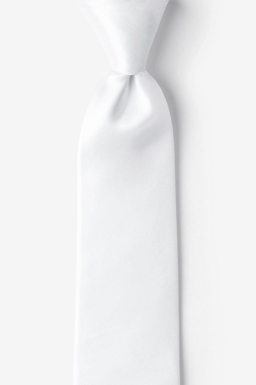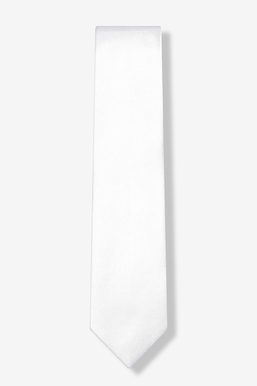 Dress in elegance with this premier solid-color men's necktie. Rendered in a stunning Wedding Day White weave atop a choice selection of hand-sewn silks, this handsome necktie best befits the finer events of a man's life. Cut with a slim-but-not-too-slim three inch cut and featuring a sleek satin sheen, this tie keeps stylish without losing the charm of the classics -- an excellent necktie for weddings, baptisms, funerals, galas, and other formal events and the dignified choice for the dignified man. This tie is not guaranteed to match other products offered in Wedding Day White.