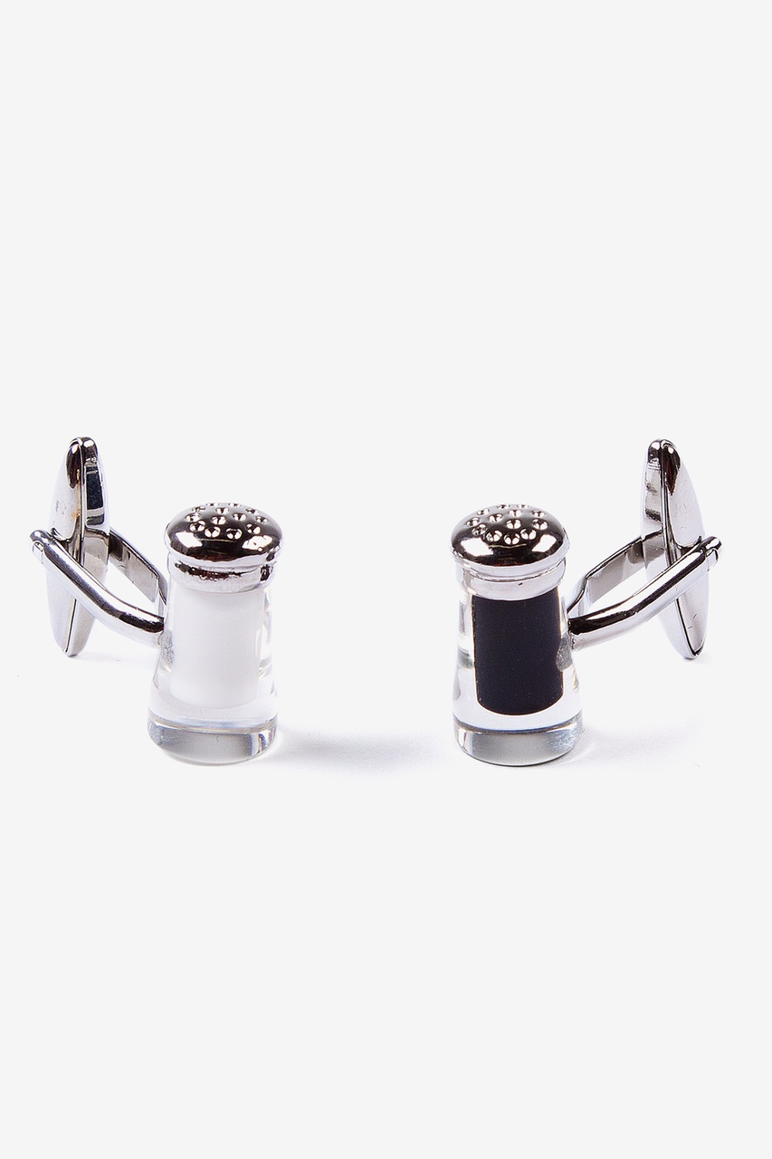 Shake up your everyday wardrobe with a great pair of novelty cuff links! These Salt & Pepper Shakers are perfect to add a little bit of humor to your outfit. One side features salt, and of course the other, pepper. Made from 100% silver rhodium, these accessories will surely grab the attention of food lovers and make your sleeve stand out!