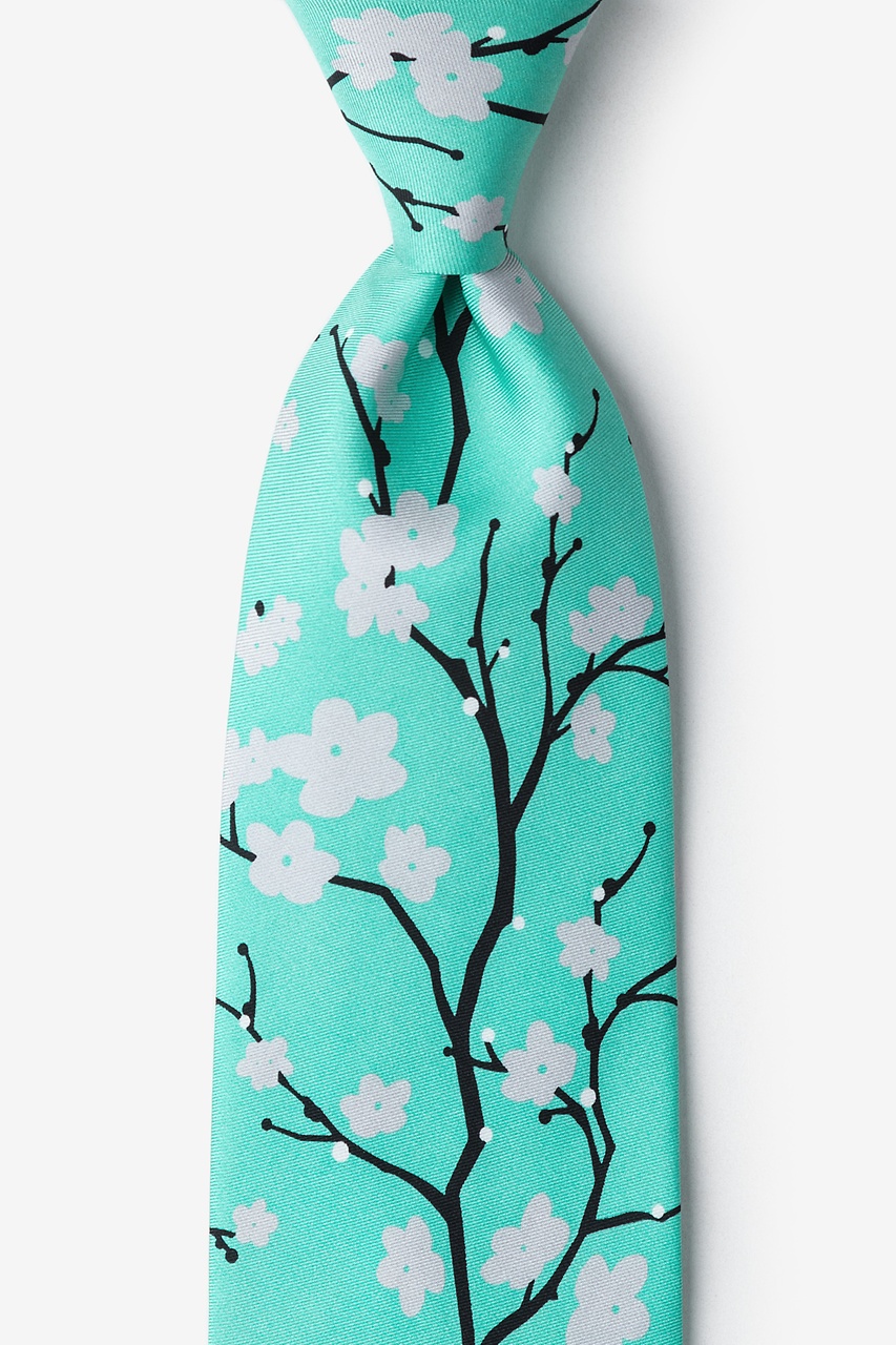Bring a stylish new look into your daily attire with this fine men's necktie from Wild Ties. Featuring a fresh take on Cherry Blossoms against a clean turquoise background, this necktie brings forth a look marked by both style and confidence, making it the perfect accessory for any man who likes to make their presence known.