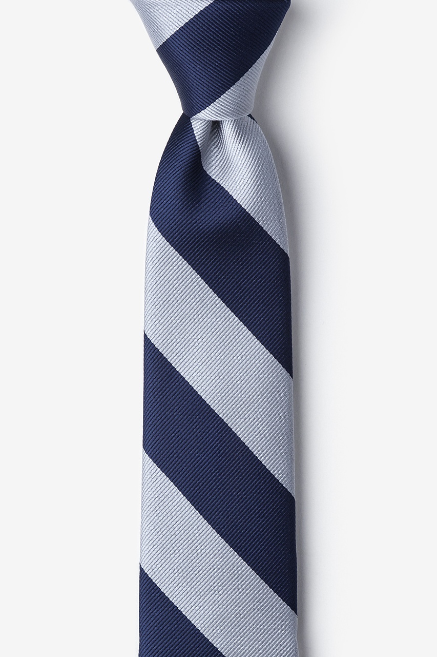 Every distinguished gentleman should own a classic collegiate stripe tie. It's ease of pairing with dress shirts and suits alike has made this design a timeless favorite over the years and a must have for school and business uniforms. Each skinny tie is designed with 100% woven microfibers for a sturdy tie that is sure to outlast the seasons and make for easy maintenance. Featured in navy and silver stripe, we invite you to fall in love with this classic.