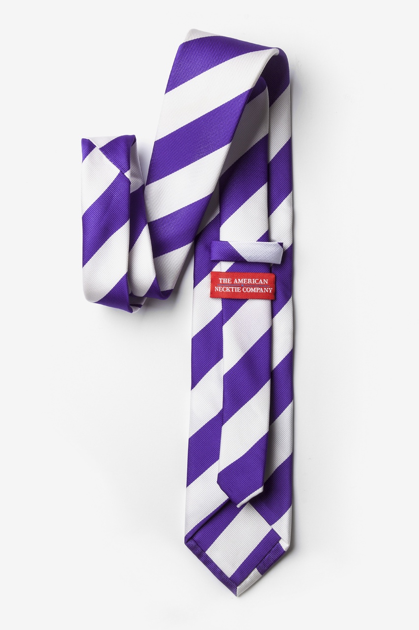 Every distinguished gentleman should own a classic collegiate stripe tie. It's ease of pairing with dress shirts and suits alike has made this design a timeless favorite over the years and a must have for school and business uniforms. Each extra long tie is designed with 100% woven microfibers for a sturdy tie that is sure to outlast the seasons and make for easy maintenance. Featured in purple and silver stripe, we invite you to fall in love with this classic.