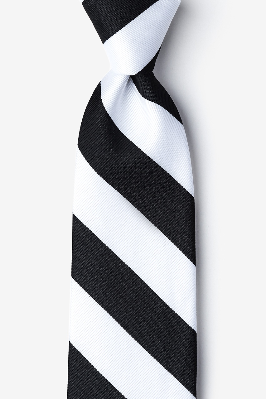 Every distinguished gentleman should own a classic collegiate stripe tie. It's ease of pairing with dress shirts and suits alike has made this design a timeless favorite over the years and a must have for school and business uniforms. Each necktie is designed with 100% woven microfibers for a sturdy tie that is sure to outlast the seasons and make for easy maintenance. Featured in black and white stripe, we invite you to fall in love with this classic.