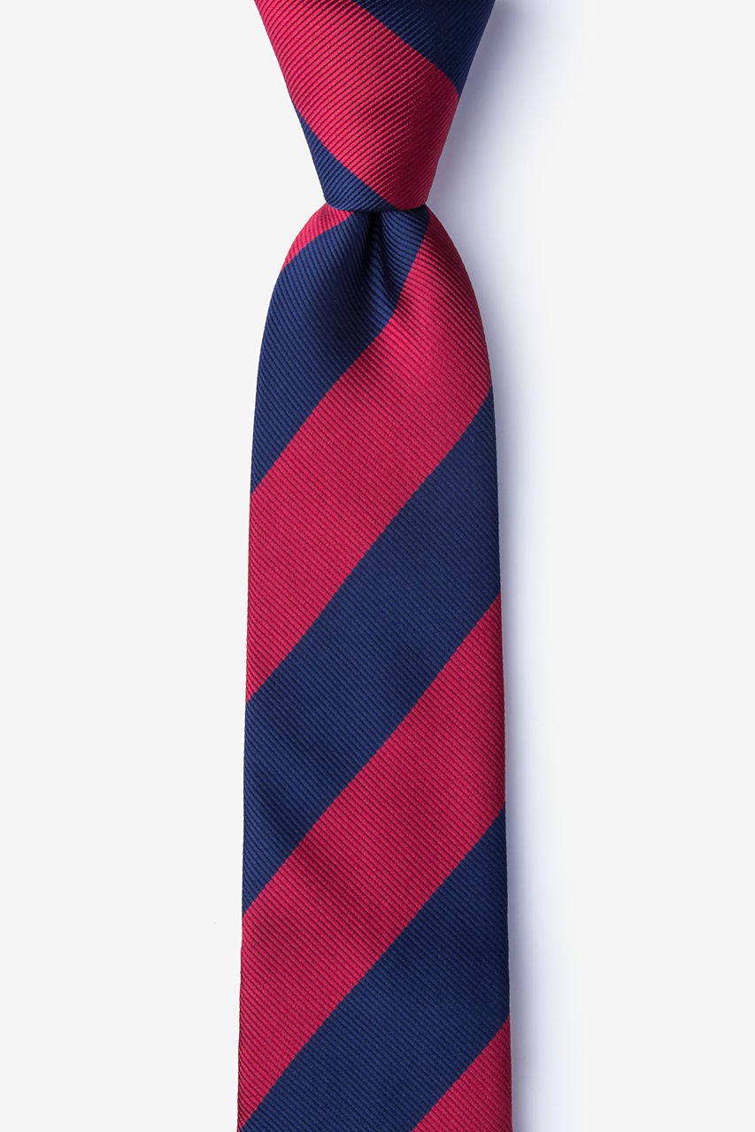 Every distinguished gentleman should own a classic collegiate stripe tie. It's ease of pairing with dress shirts and suits alike has made this design a timeless favorite over the years and a must have for school and business uniforms. Each skinny tie is designed with 100% woven microfibers for a sturdy tie that is sure to outlast the seasons and make for easy maintenance. Featured in burgundy and navy stripe, we invite you to fall in love with this classic.