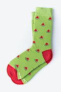 These socks are made from high quality carded cotton, ensuring a soft and comfortable fit. They come in a vibrant green color, perfect for adding a pop of color to any outfit. With a durable construction, these socks are meant to last and be a staple in your wardrobe. The two pairs included in this package are perfect for a couple to share, with one pair in each size to ensure a perfect fit for both individuals. The socks feature a playful watermelon theme, with charming depictions of watermelon slices. Whether you're a fan of summertime fruit or just appreciate a fun and colorful accessory, these green cotton socks are sure to be a hit.