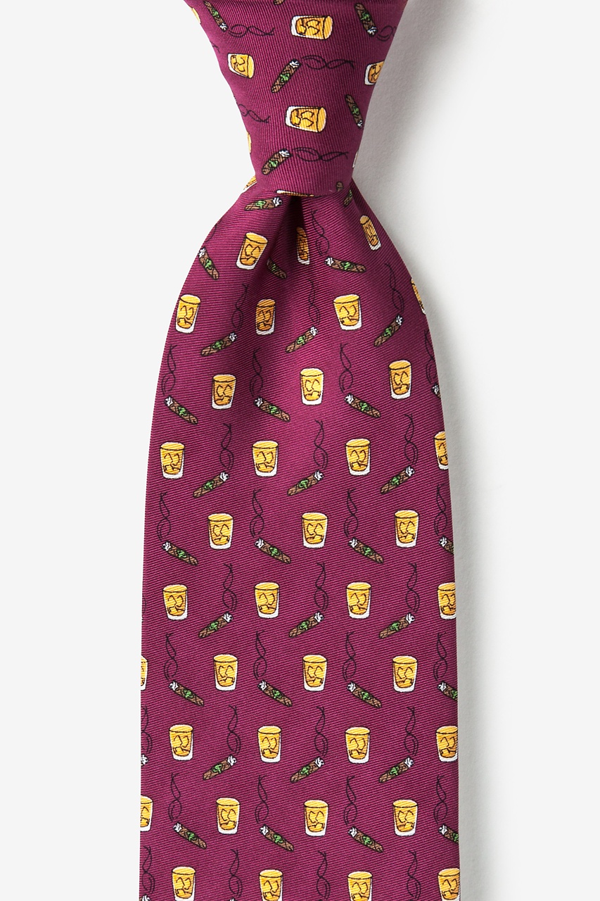 Whiskey and a stogie? Yes, please! Cigars and whiskey alone carry countless flavors. This burgundy Whiskey & Stogies tie emcompasses the feeling of finding that perfect match between malty and smokey.