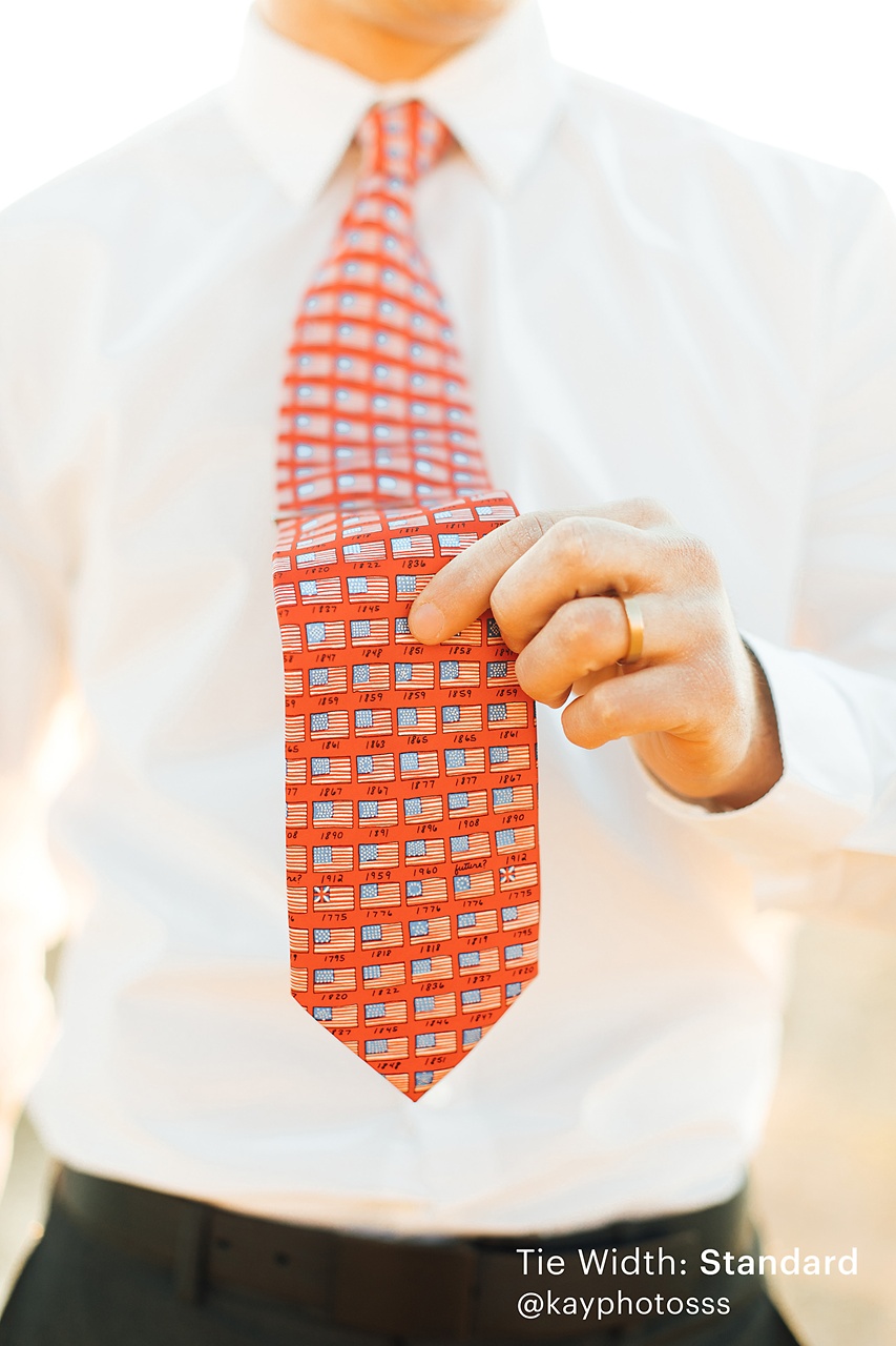 Take a walk through United States history. From Betsey Ross's handcrafted design to our current flag, this tie celebrates how far we've come. Made from 100% silk, this patriotic tie is one of our best.