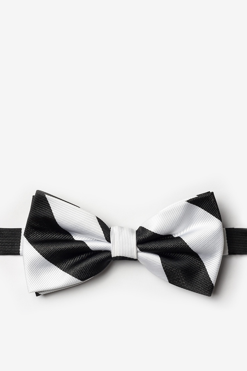 Every distinguished gentleman should own a classic collegiate stripe bow tie. Its ease of pairing with dress shirts and suits alike has made this design a timeless favorite over the years and a must-have for school and business uniforms. Each pre-tied bow tie is made of 100% woven microfiber for a sturdy bow tie that is sure to outlast the seasons and make for easy maintenance. Featured in black and white stripes, we invite you to fall in love with this classic.