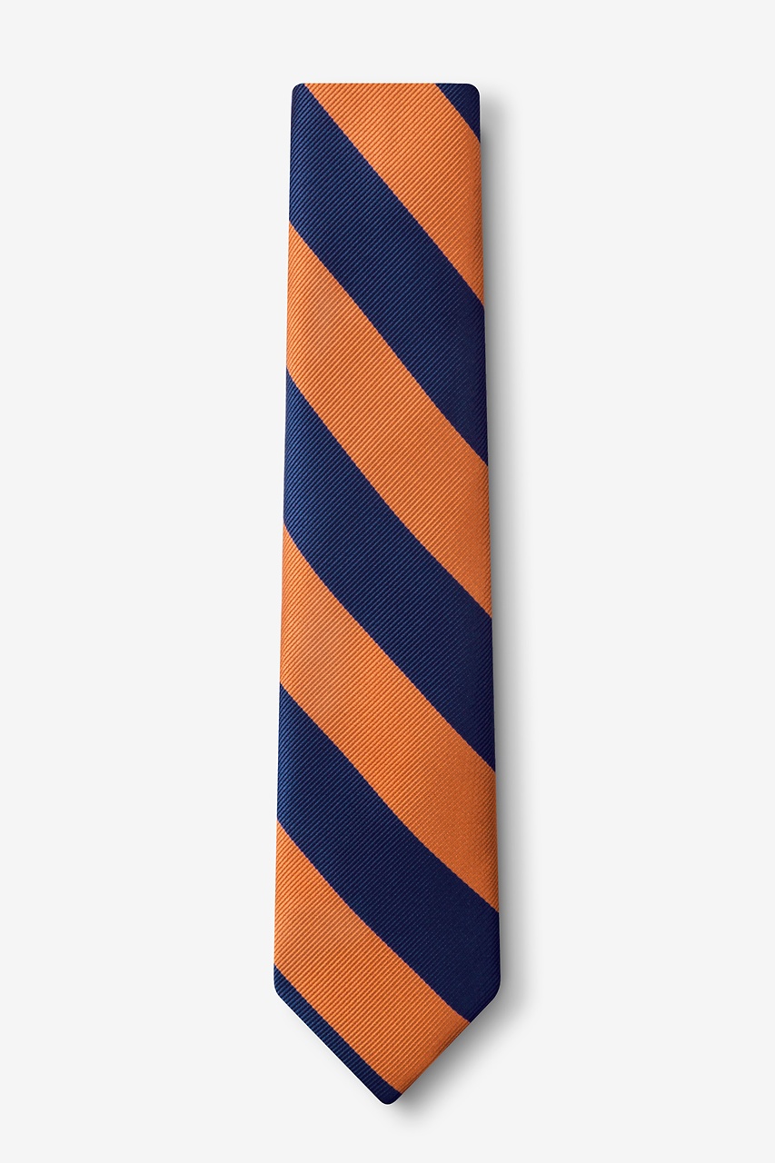Every distinguished young gentleman should own a classic collegiate stripe tie. Its ease of pairing with dress shirts and suits alike has made this design a timeless favorite over the years and a must-have for school and business uniforms. Each boy's tie is made of 100% woven microfiber for a sturdy tie that is sure to outlast the seasons and make for easy maintenance. Featured in orange and navy blue stripes, we invite you to fall in love with this classic.