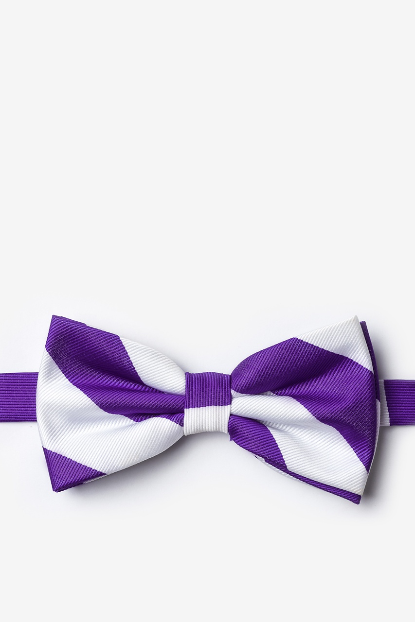 Every distinguished gentleman should own a classic collegiate stripe bow tie. Its ease of pairing with dress shirts and suits alike has made this design a timeless favorite over the years and a must-have for school and business uniforms. Each pre-tied bow tie is made of 100% woven microfiber for a sturdy bow tie that is sure to outlast the seasons and make for easy maintenance. Featured in purple and white stripes, we invite you to fall in love with this classic.