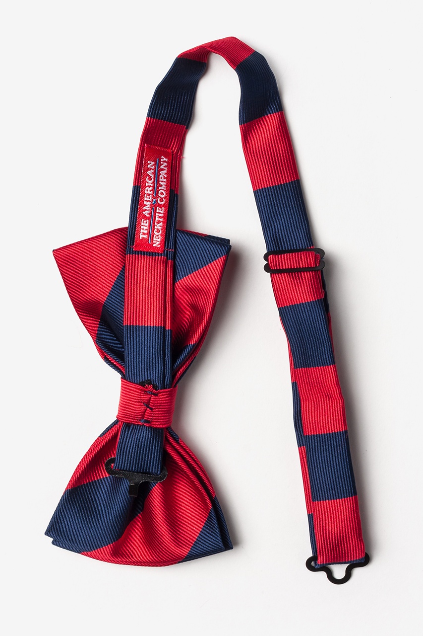 Every distinguished gentleman should own a classic collegiate stripe bow tie. Its ease of pairing with dress shirts and suits alike has made this design a timeless favorite over the years and a must-have for school and business uniforms. Each pre-tied bow tie is made of 100% woven microfiber for a sturdy bow tie that is sure to outlast the seasons and make for easy maintenance. Featured in red and navy blue stripes, we invite you to fall in love with this classic.