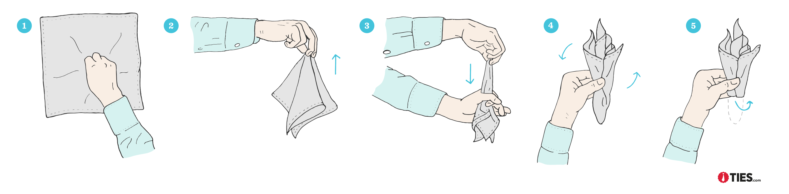 4. Holding the center, flip the pocket square so that the peaks are facing up