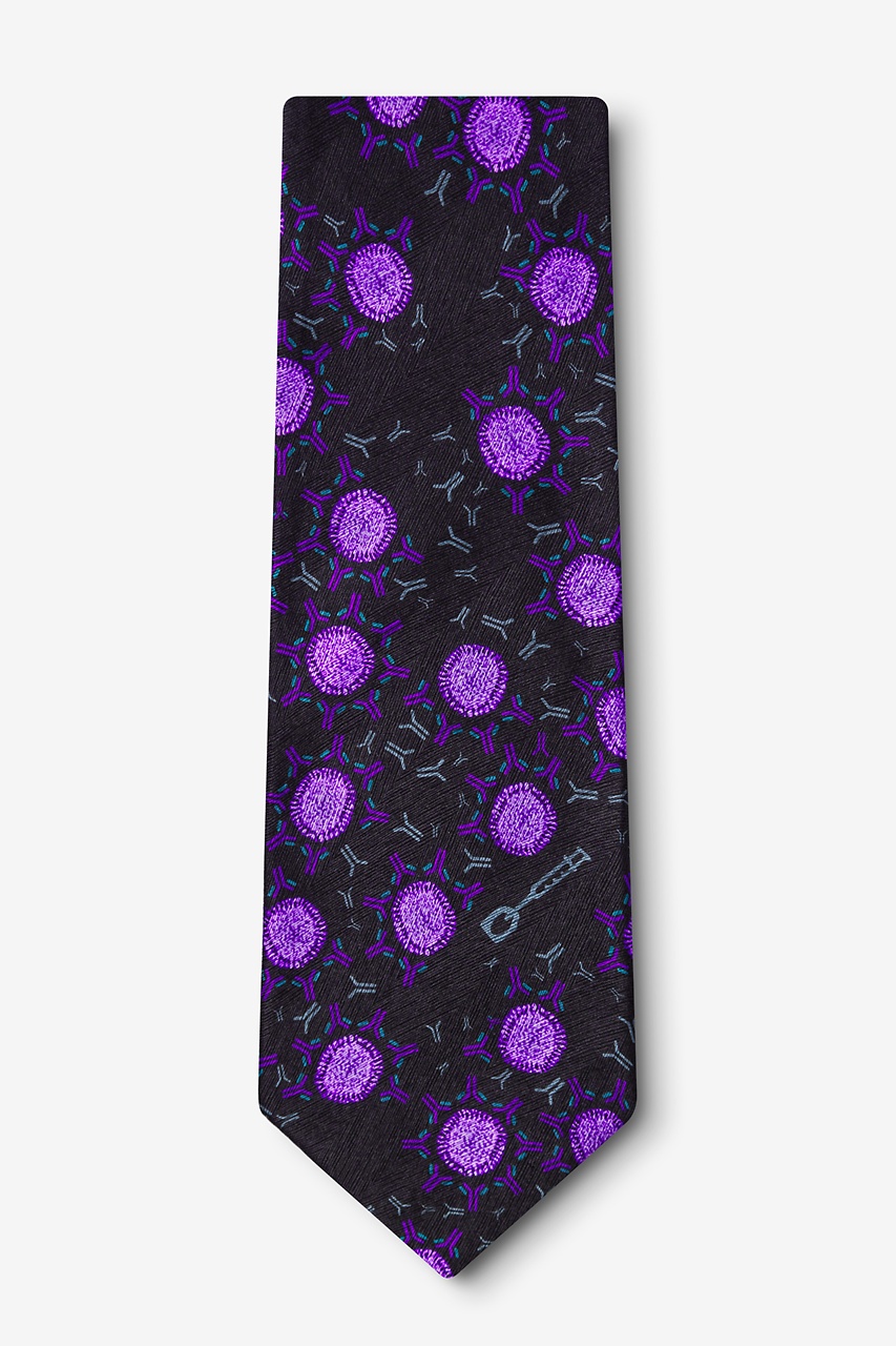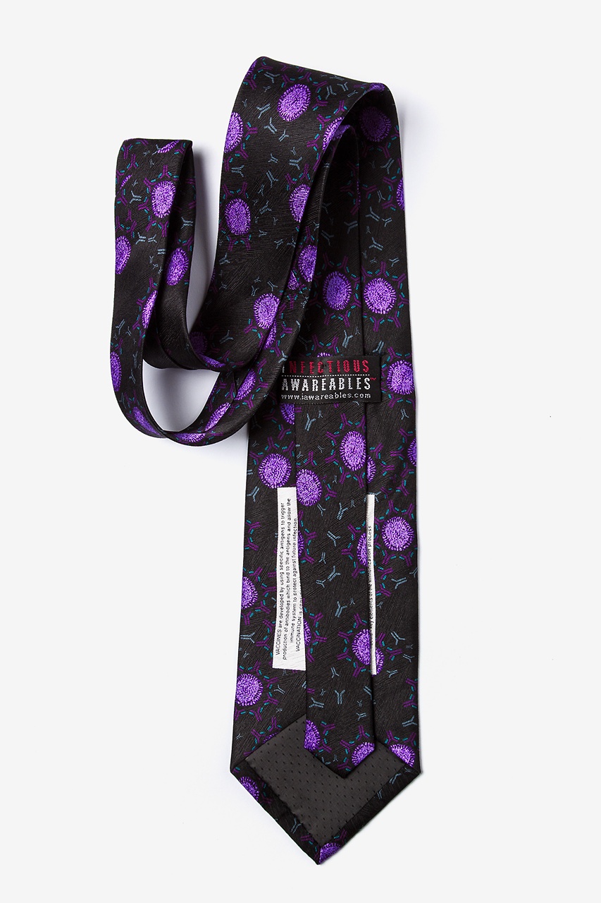 The mission of every Infectious Awareables tie is to generate interest, discussion, even excitement about serious public health issues such as this silk Vaccine tie in black.