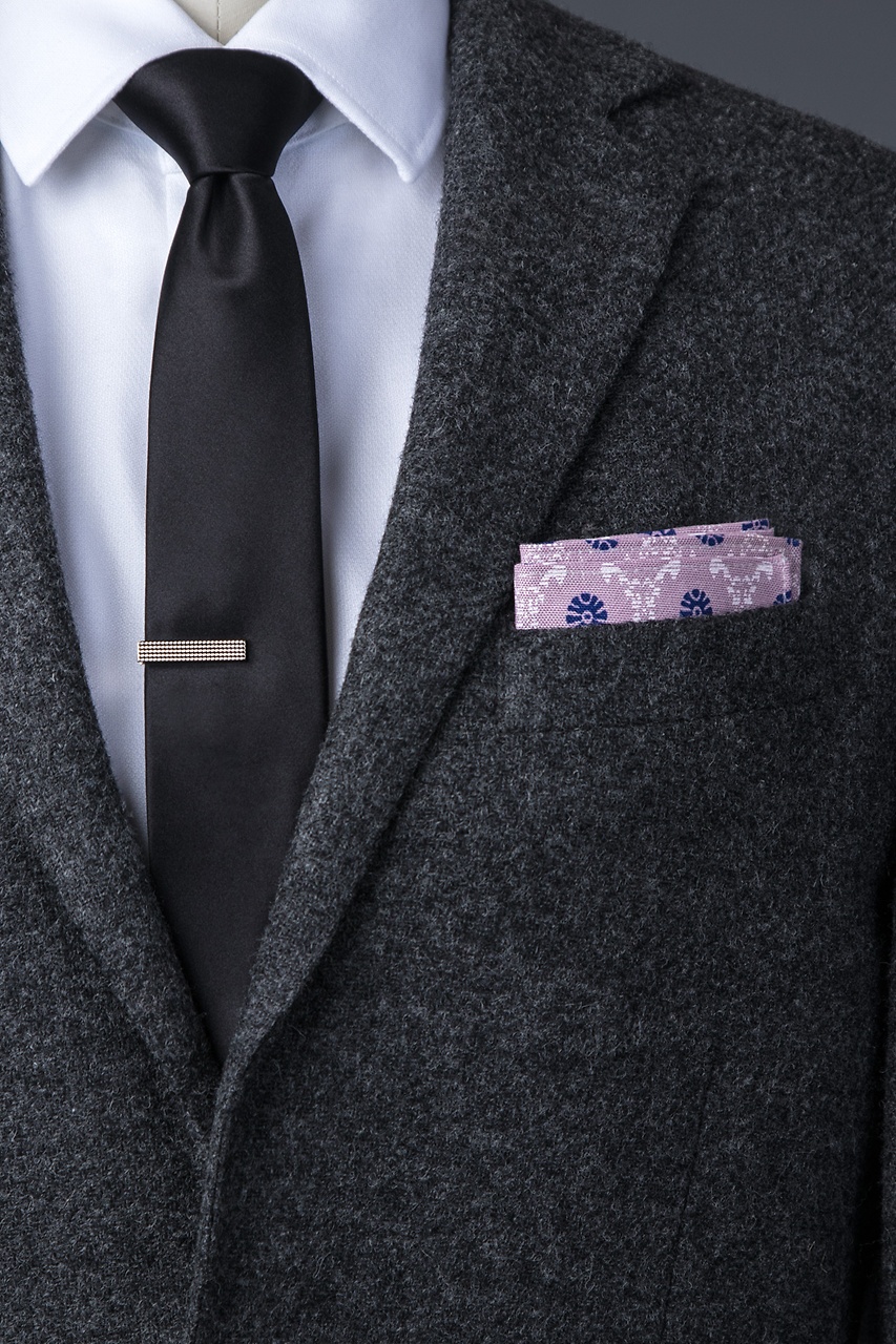 Our La Grande pocket square is the perfect spring update to any wardrobe. With its eye-catching blue and white accents against solid mauve, this accessory is a great choice for both the office and casual gatherings.