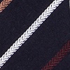 Take a break from the standard striped bow tie with a variation that's cool and colorful. The Houston Butterfly Bow Tie in navy blue is adorned with white, taupe, and maroon diagonal stripes for an interesting twist. Made of durable cotton.