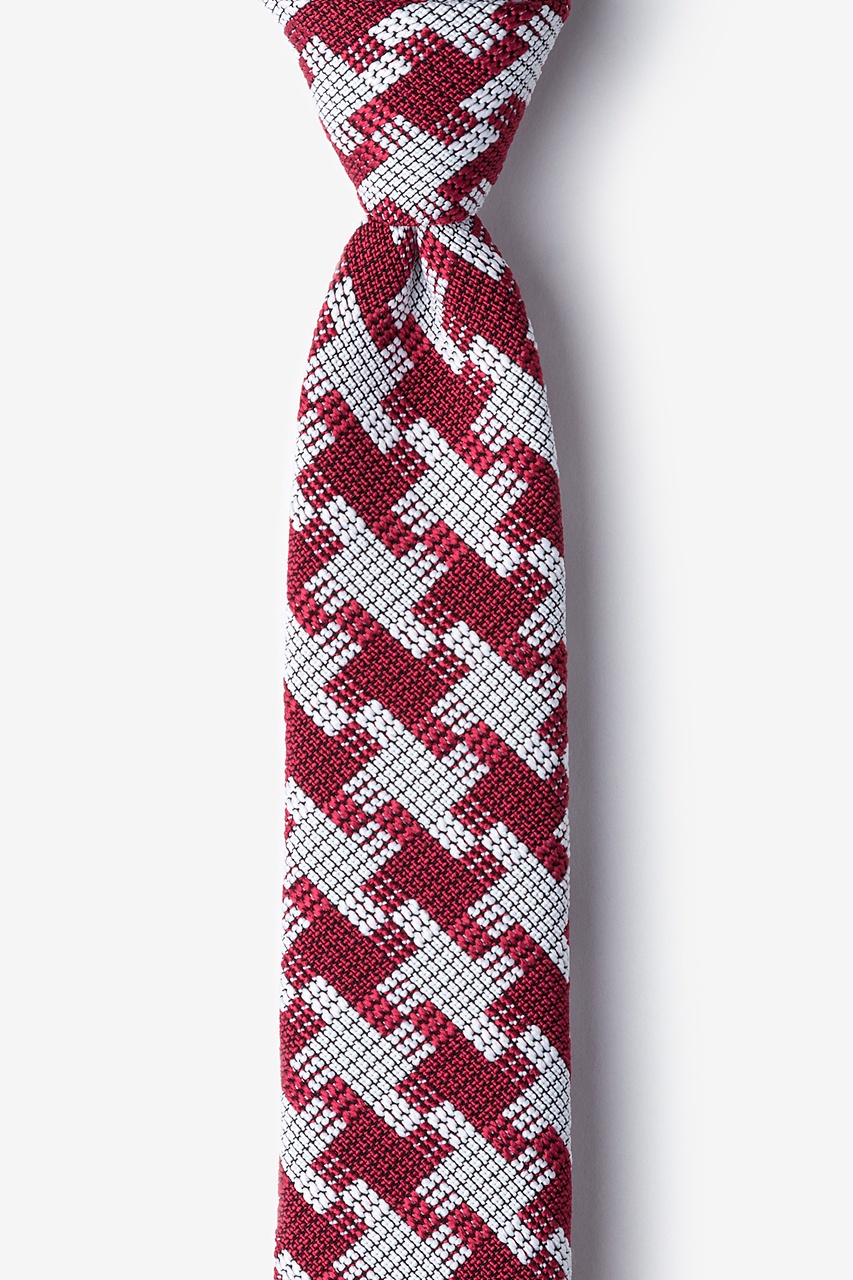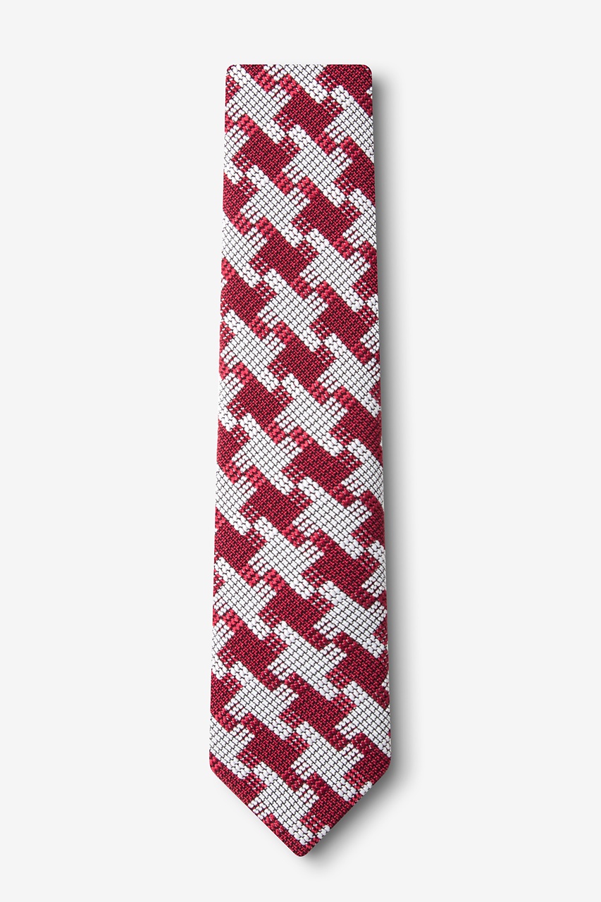 The Buckeye Thick skinny tie is perfect for anyone looking to add unique patterns to their closet. This hefty tie features a giant houndstooth weave, with opposing red and white colors. It will make a great addition to any winter outfit.
