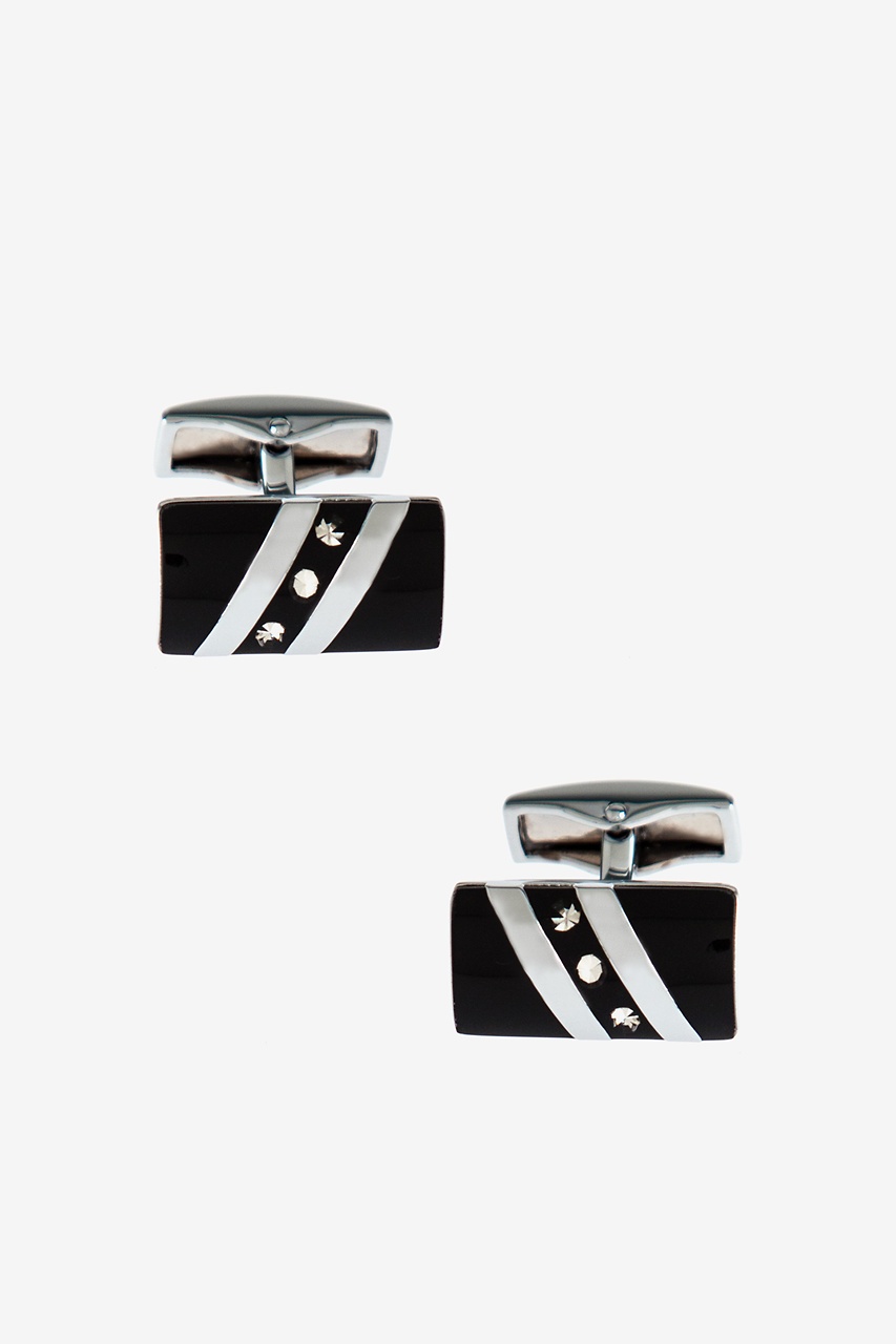 Take your style beyond the standard with the Parallel Glitzy Rectangle cufflink. Perfect for work-related settings, this little accessory will make a huge impact to one's outfit. Add some flair with this black cufflink in metal today.