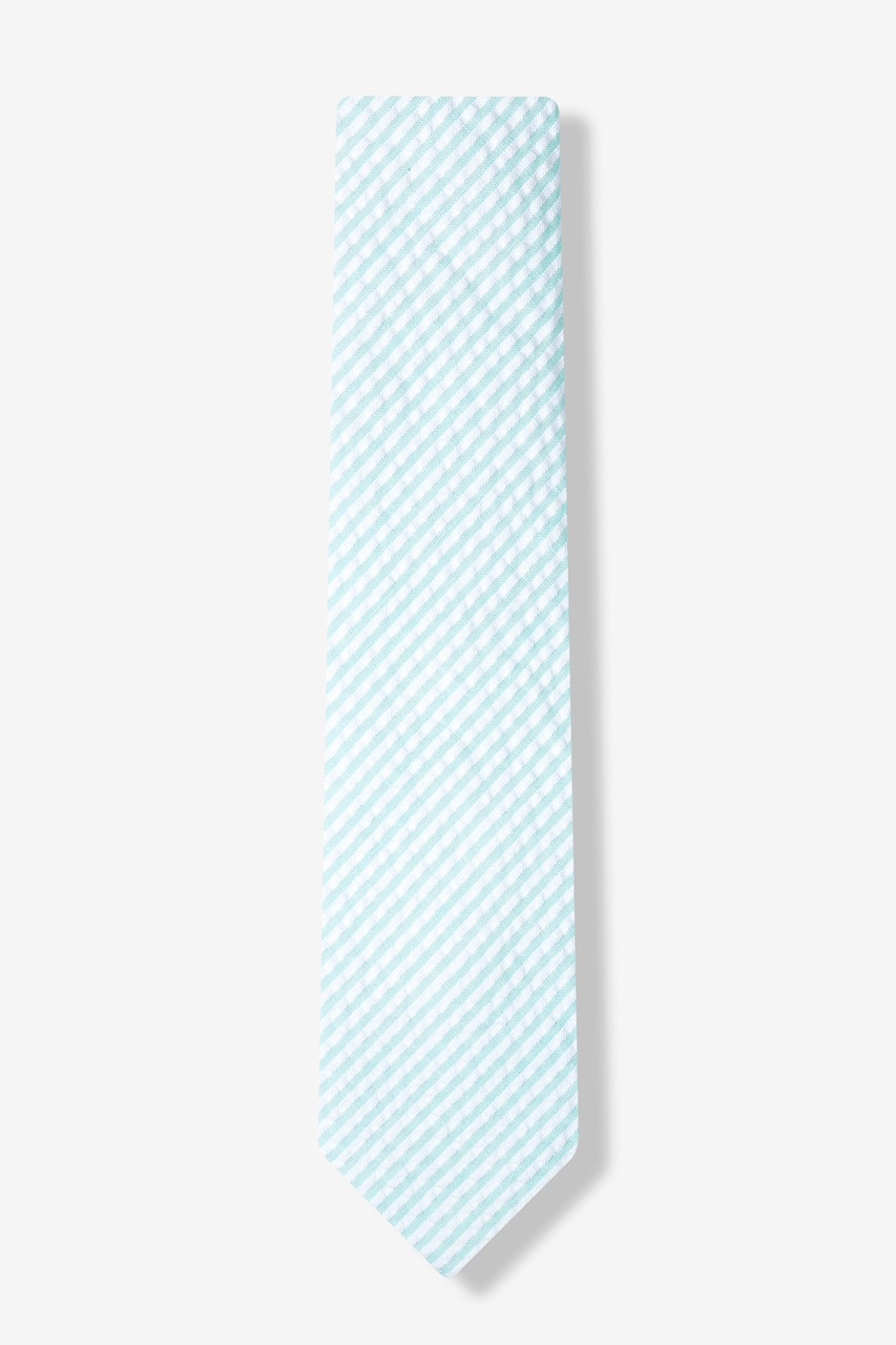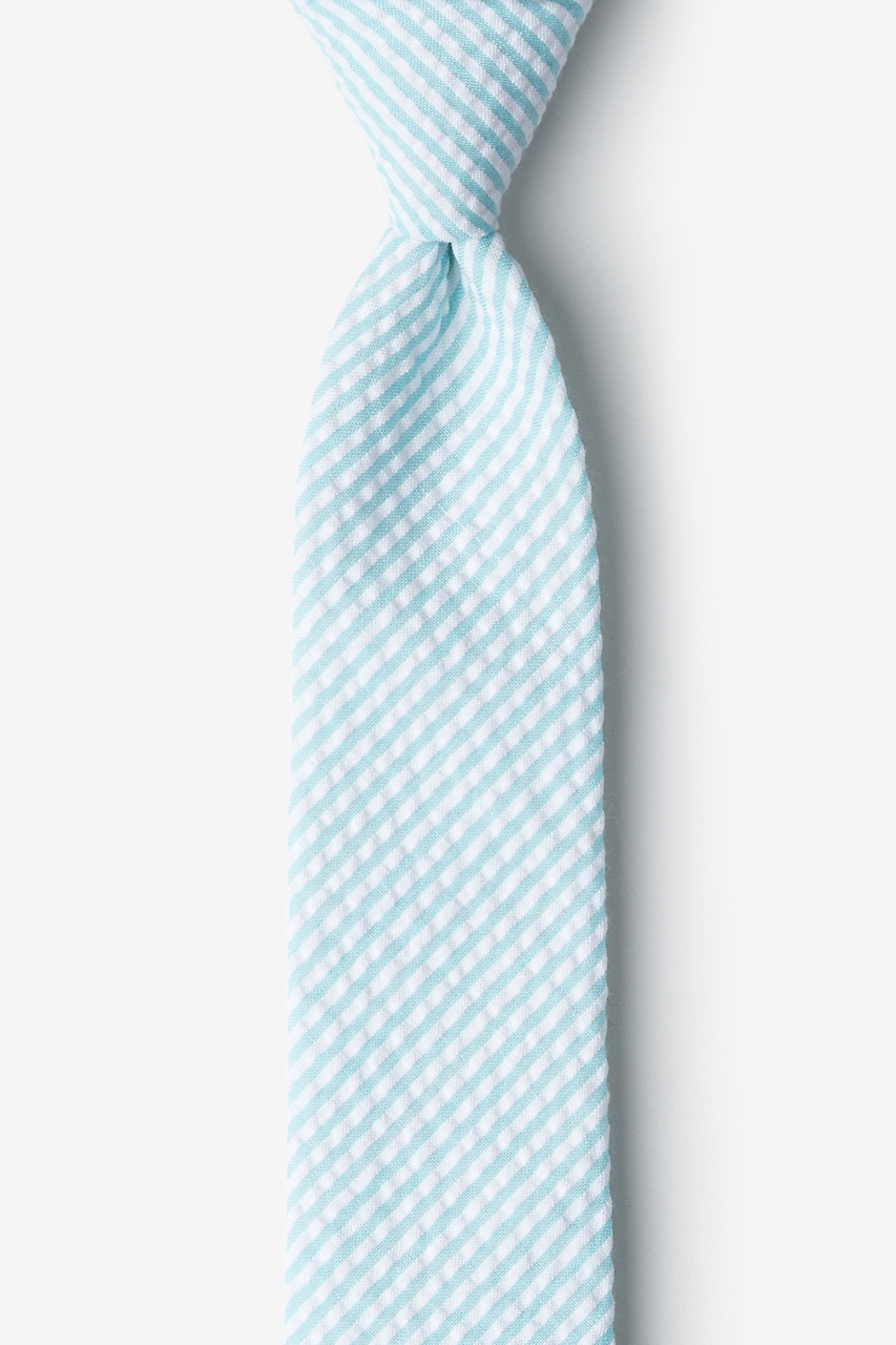 Why change a summertime classic? Ties.com's signature Kensington Seersucker tie sticks to the tried and true seersucker pattern with stripes of white and sky blue on a puckered cotton material. It's a timeless skinny tie for spring and summer.