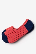 You can never go wrong with polka dots. Our Laguna Polka Dot Carded Cotton socks in coral feature maroon polka dots atop a coral background, complete with navy blue toes and heel turns. Made of high quality cotton and featuring anti-slip technology, these socks are as comfortable as they are stylish.