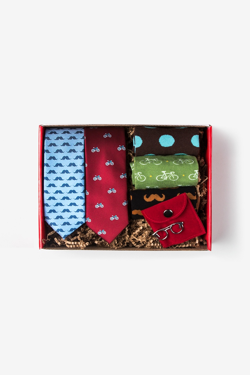 Let us do the work when it comes to your shopping. The Hipster Gift Box features a mix of classic and novelty products including mustache socks and a bicycle tie, perfect for the every day hipster. This hand-picked selection of wardrobe staples is the perfect gift for everyone, from dads, to recent grads, to business professionals alike. Upgrade anyone's wardrobe effortlessly and with confidence this season. This set comes with 2 ties, 3 socks, and 1 tie bar and is handsomely packed and ready for gifting.