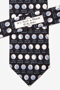 Pass the time with the flow of the moon's phases with Alynn Neckwear's 100% silk It's Just a Phase Tie. The various phases are patterned in sequence to the moon's true orbit with hues of white, grey, and blue on a silk night sky of black.