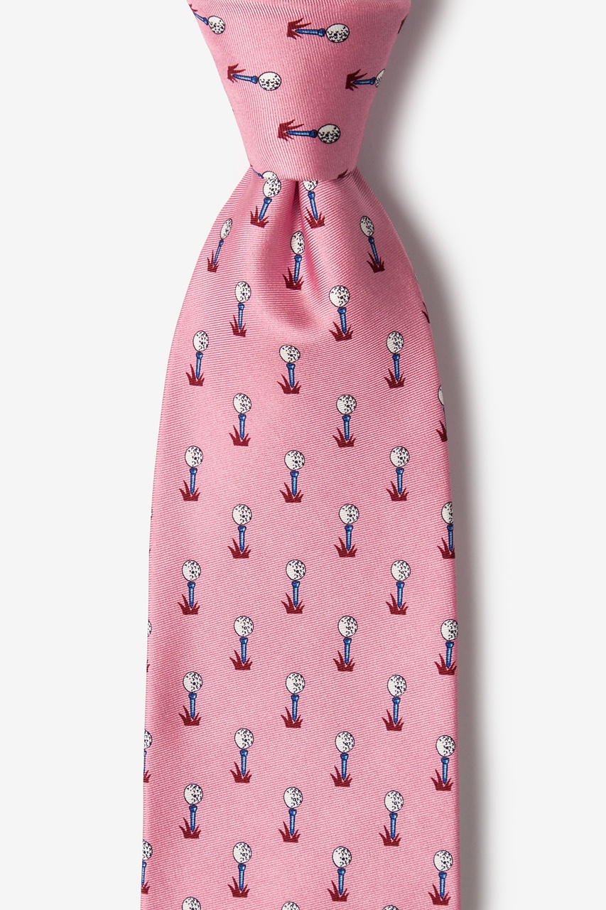 You wouldn't want to miss your golf tee time and now you never will with Alynn Neckwear's Teed Off Tie. This is a tie for every kind of golfer, ranging from the miniature golf amateurs to weekly practitioners to PGA contenders, featuring a repeating blue golf tee pattern on a pink background. This 100% silk tie will show others your love for the game of golf.