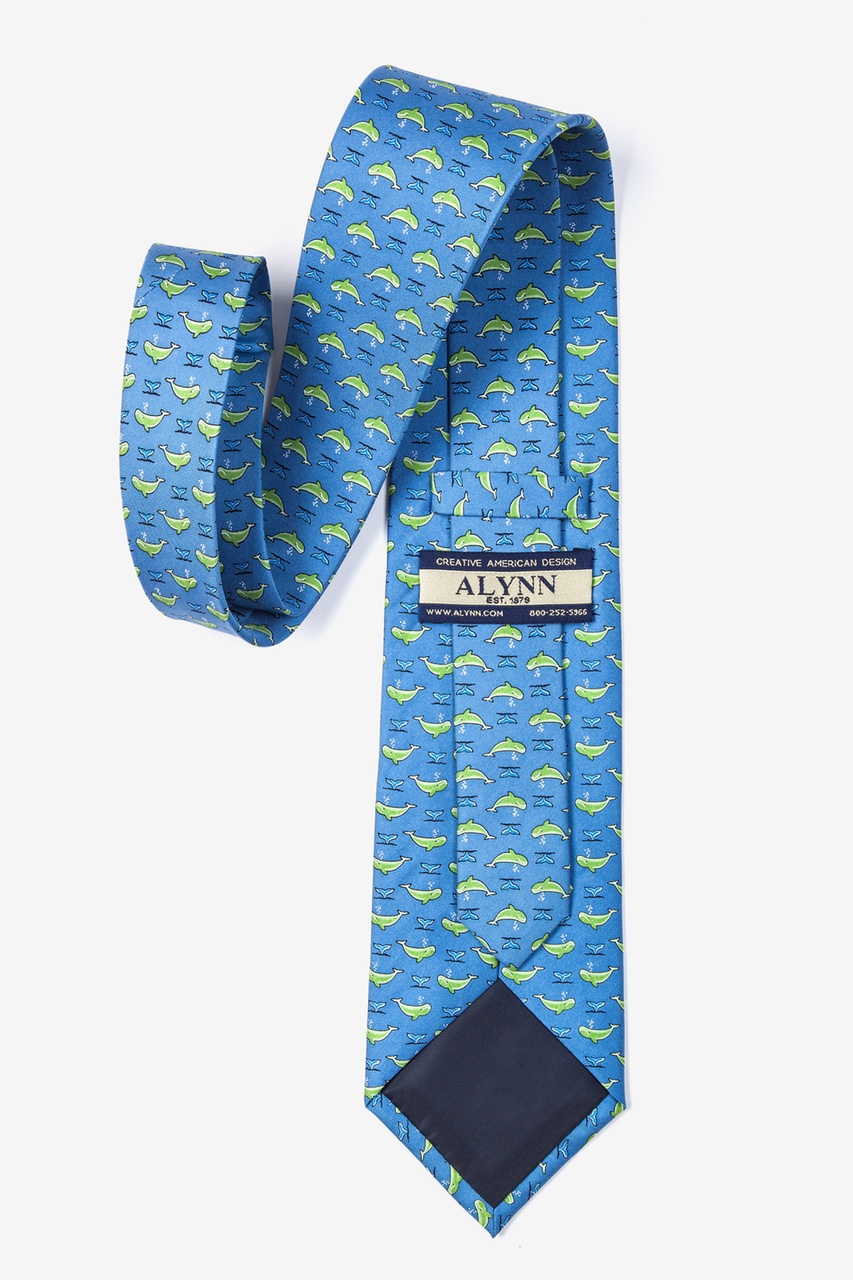 Did you know that a humpback whale may eat up to a ton of food every day? Express your love for these amazing sea creatures with this finely crafted 100% silk tie by Alynn Neckwear. Featuring charming green whales spouting air and blue whale tails atop a blue background, our Whales' Tails Tie is perfect for marine animal lovers.