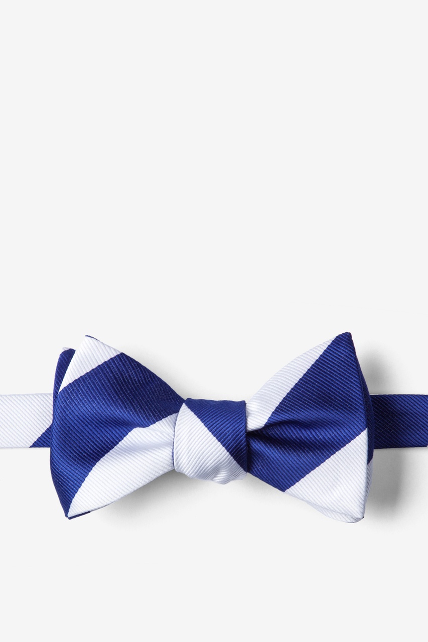 Every distinguished gentleman should own a classic collegiate stripe tie. It's ease of pairing with dress shirts and suits alike has made this design a timeless favorite over the years and a must have for school and business uniforms. Each self tie bow tie is designed with 100% woven microfibers for a sturdy tie that is sure to outlast the seasons and make for easy maintenance. Featured in blue and white stripe, we invite you to fall in love with this classic.
