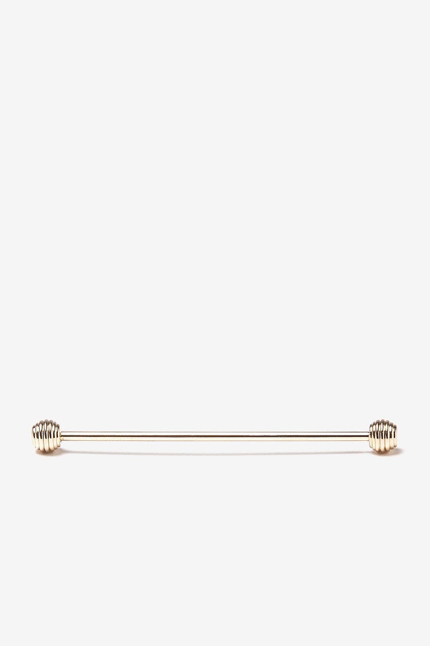 This is a premium gold finished eyelet collar pin with detailed ball shaped ends. One end unscrews to allow the device to slide through the holes in your eyelet pin dress shirt collar (not designed for a standard dress shirt). This fits on a narrow or standard point collar shirt.