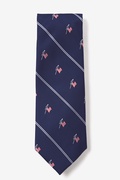 This fine men's necktie features a patriotic pattern of red, white and blue American Flags separated by two fine stripes on a navy blue background. Woven, this soft microfiber necktie will make an excellent addition to any wardrobe. Wear this stunning necktie as a statement of pride for the American country!