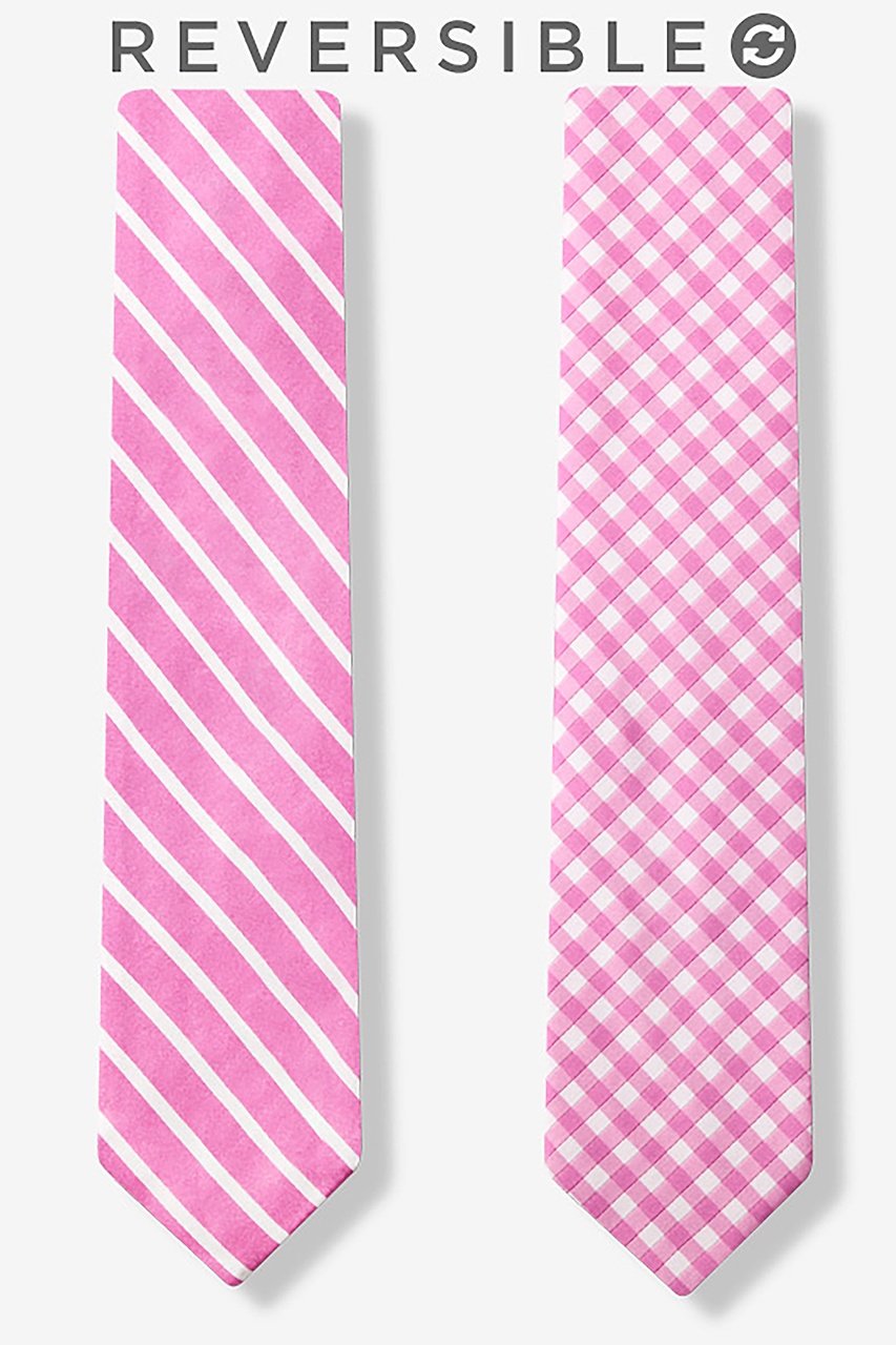 Striped or checkered. . . . checkered or striped? You'll be faced with this monuments decision with Principessa Regale's Two-sided Stripe and Check skinny line. Featuring this ingenious innovation, the necktie features a reversible design so that you can be striped in the morning and checkered out in the afternoon! Surprise co-workers and friends alike with this charming and sophisticated necktie. Featured in this classic pink and white color pattern, this skinny necktie is 100% woven silk and was hand-crafted for a durability. Versatile and stylish, this necktie is a two for one steal!