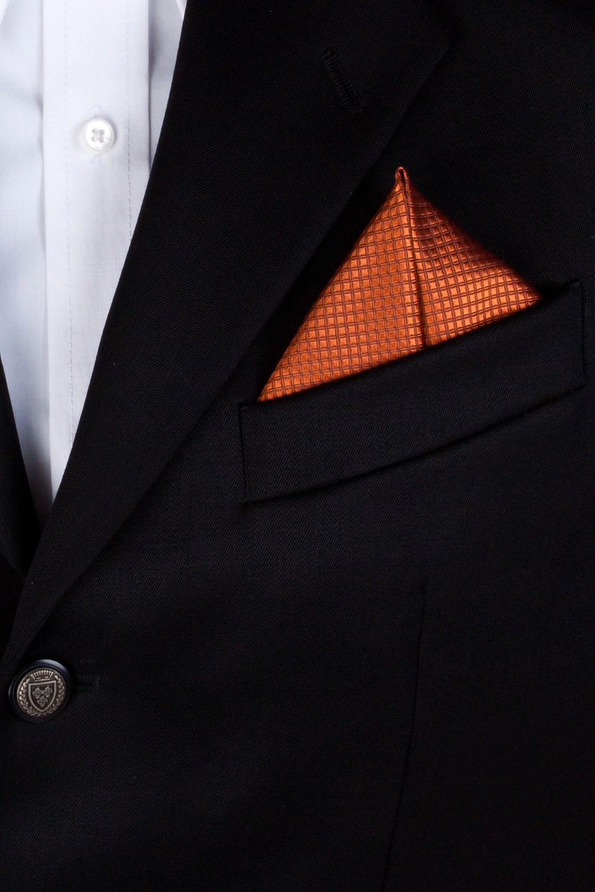 This 100% silk pocket square bears the markings found on each and every Principessa product: Style and Sophistication. Featured upon this pocket square is a refined bronze-orange toned diamond pattern, giving the pocket square a look of depth and elegance. For the classy choice choose Principessa.