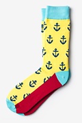 Embark on a new style statement with the Anchors Socks from Sock Genius. These nautical beauties feature a repeating pattern of blue anchors across a vivid yellow background with a fuchsia sole, and are accented by a sky blue cuff, heel turn, and toe. Made from soft, high quality cotton, these moisture wicking socks will never weigh you down.
