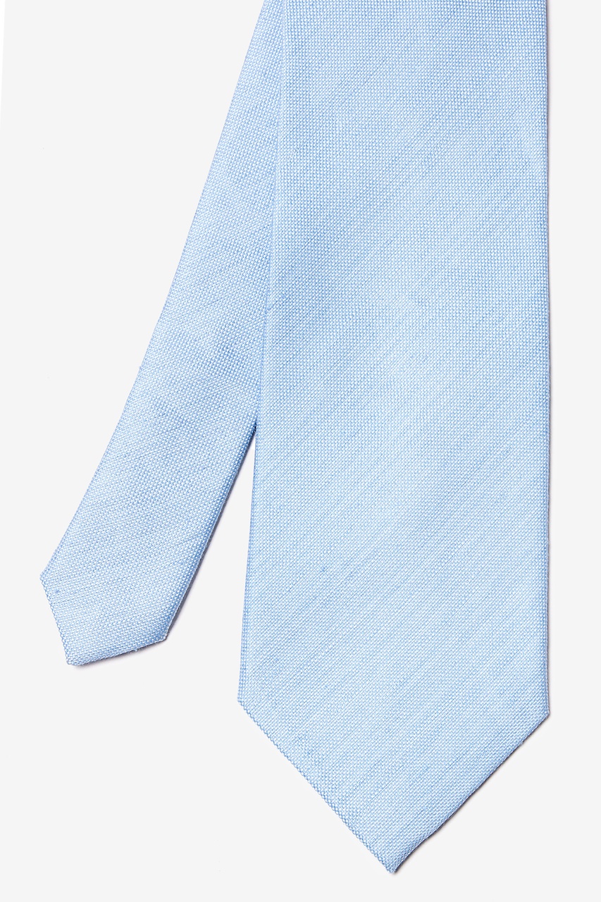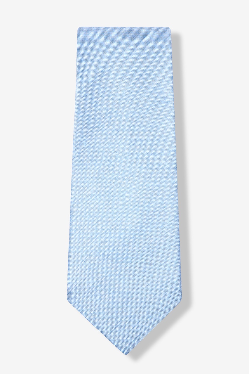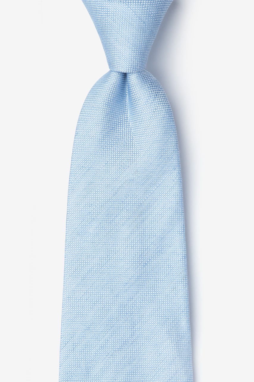 A handsome, finely ribbed woven extra long tie is cast in a sophisticated hue. This tie is made from 65% silk, 35% linen and features a solid, light blue pattern with a dotted texture.