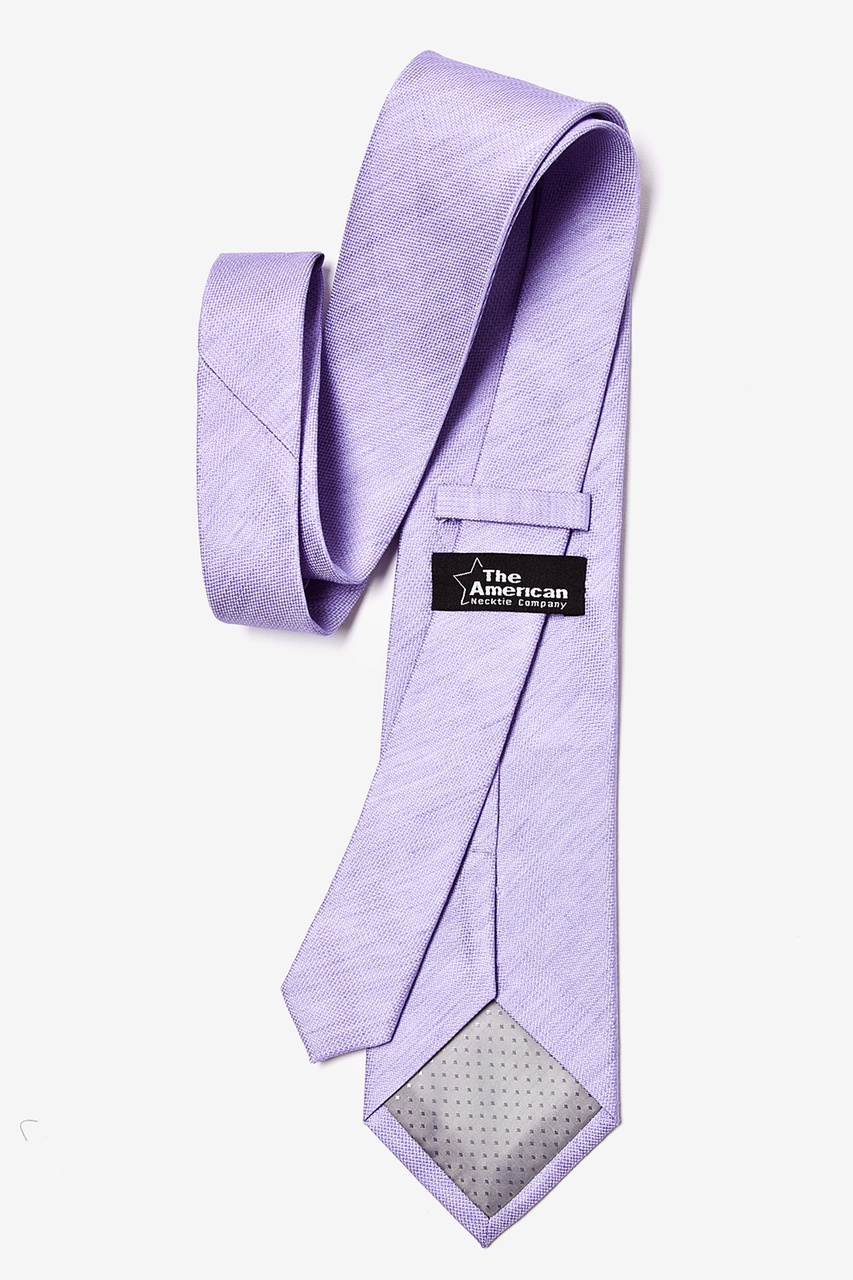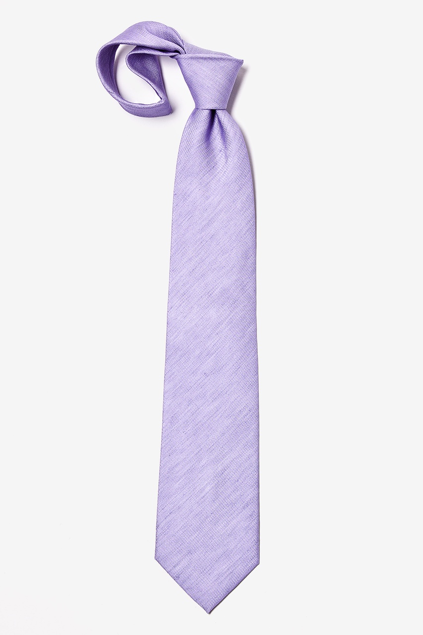 A handsome, finely ribbed extra long woven tie is cast in a sophisticated hue. This tie is made from 50% polyester, 50% linen and features a solid, lavender pattern with a dotted texture.