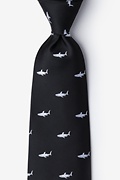 Did you know that sharks replace their teeth so often that they can actually lose almost 30,000 teeth over their lifetime? That's a lot of teeth, but don't worry, our soft microfiber ties don't bite. This men's necktie has a repeat pattern of white sharks woven onto a black background. Perfect for anyone!