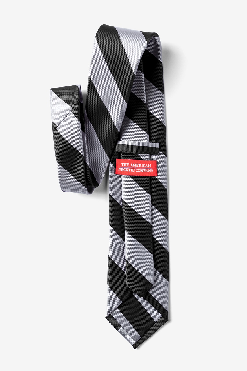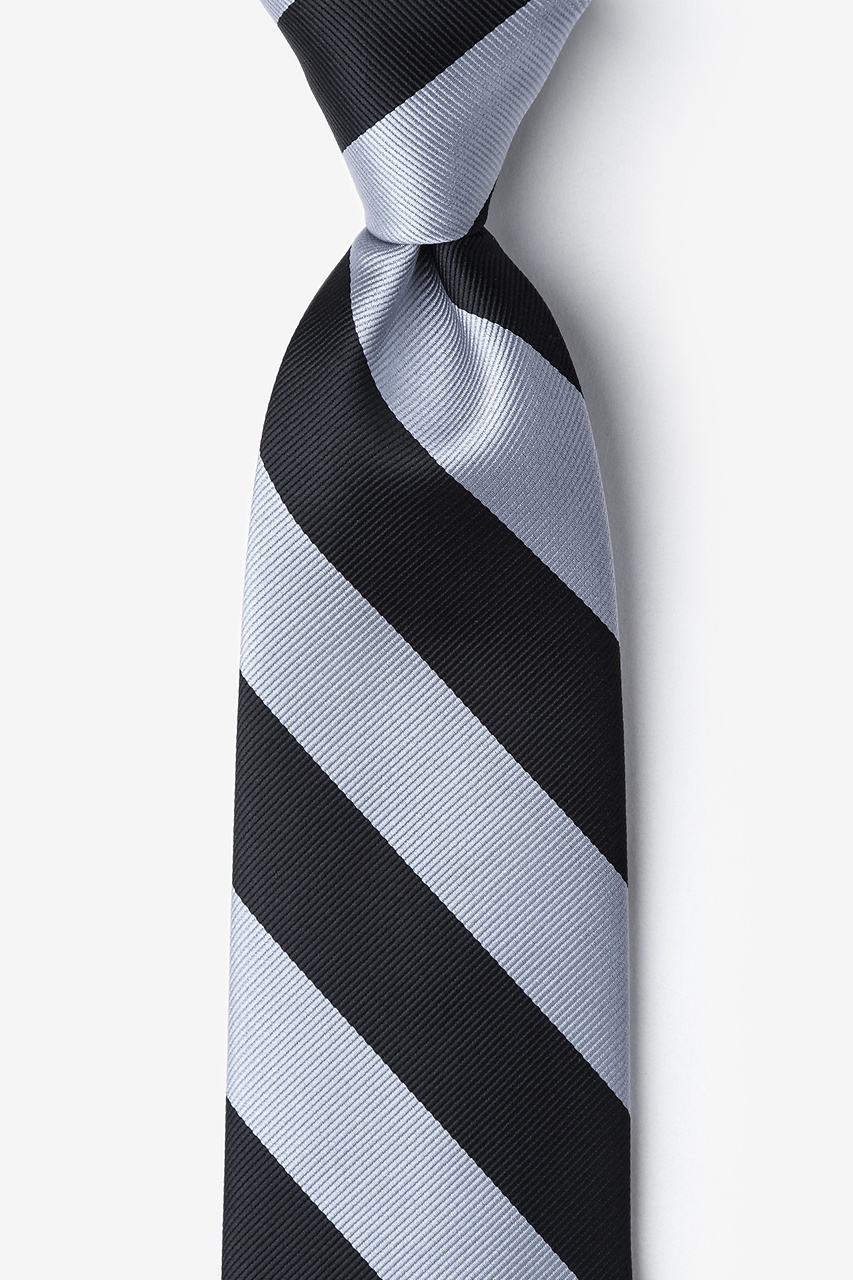 Every distinguished gentleman should own a classic collegiate stripe tie. It's ease of pairing with dress shirts and suits alike has made this design a timeless favorite over the years and a must have for school and business uniforms. Each necktie is designed with 100% woven microfibers for a sturdy tie that is sure to outlast the seasons and make for easy maintenance. Featured in black and silver stripe, we invite you to fall in love with this classic.